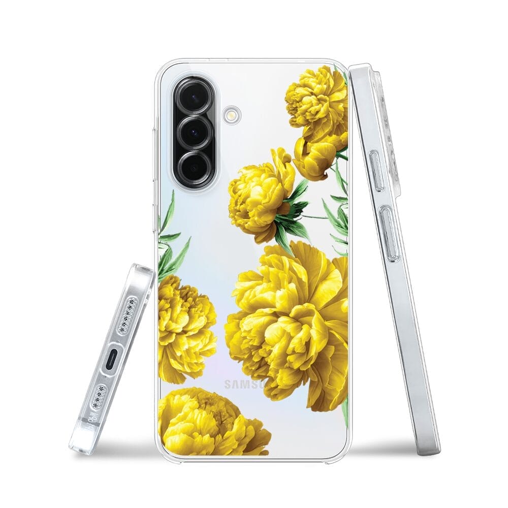 Etui do Samsung Galaxy A36 5G przeźroczyste, silikonowe Flexi, żółte piwonie