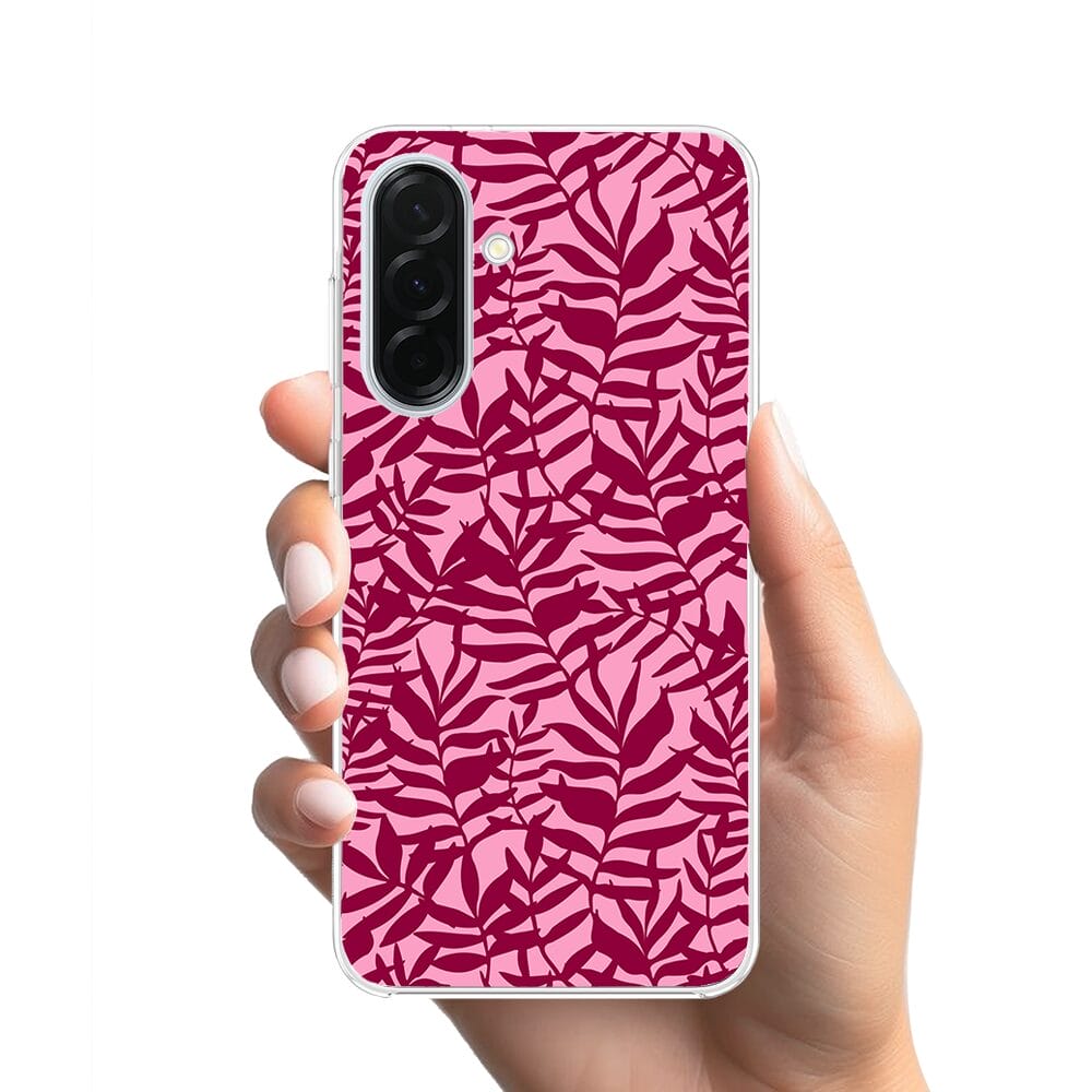Etui do Samsung Galaxy A36 5G z MagSafe przeźroczyste, silikonowe Flexi, bordowe liście