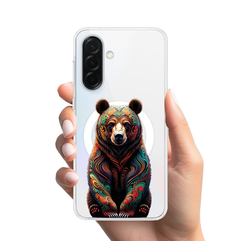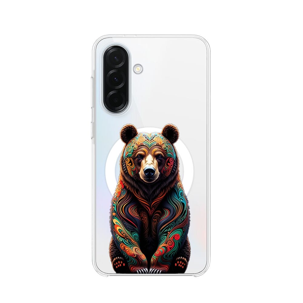 Etui do Samsung Galaxy A36 5G z MagSafe przeźroczyste, silikonowe Flexi, Dzika Mandala, Niedźwiedź