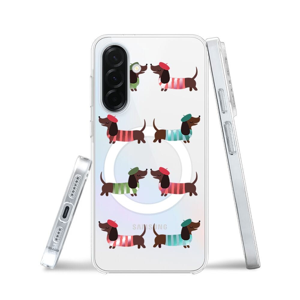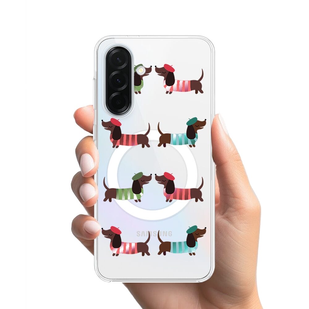 Etui do Samsung Galaxy A36 5G z MagSafe przeźroczyste, silikonowe Flexi, jamnik w Paryżu