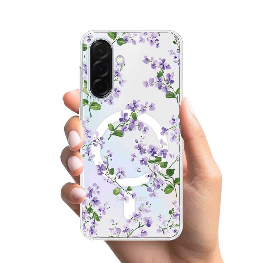 Etui do Samsung Galaxy A36 5G z MagSafe przeźroczyste, silikonowe Flexi, Fioletowe Bratki