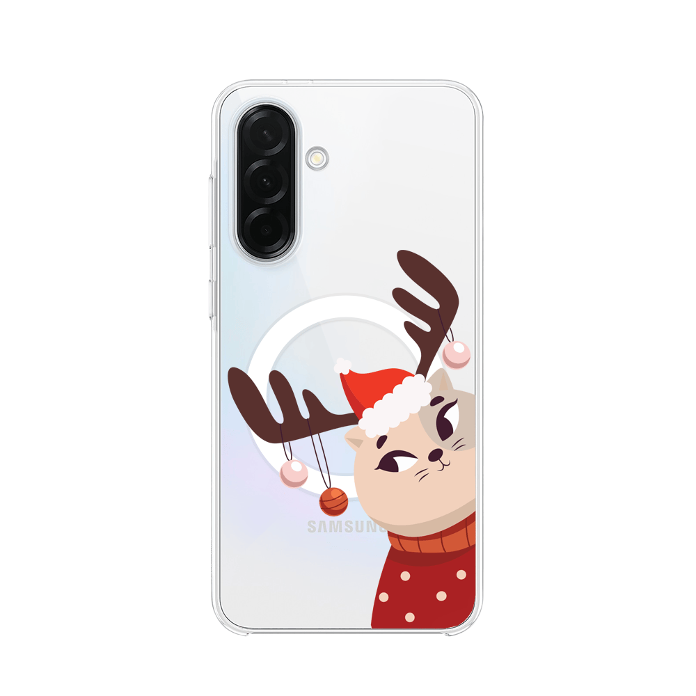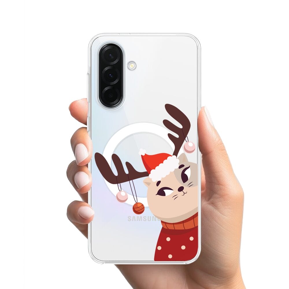 Etui do Samsung Galaxy A36 5G z MagSafe przeźroczyste, silikonowe Flexi, Kotek przebrany za reniferka