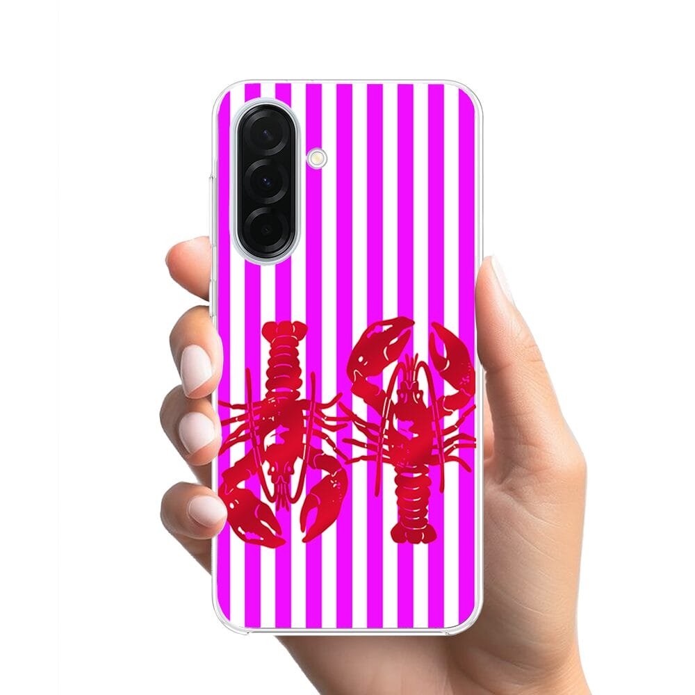Etui do Samsung Galaxy A36 5G z MagSafe przeźroczyste, silikonowe Flexi, kraby z różowymi paskami
