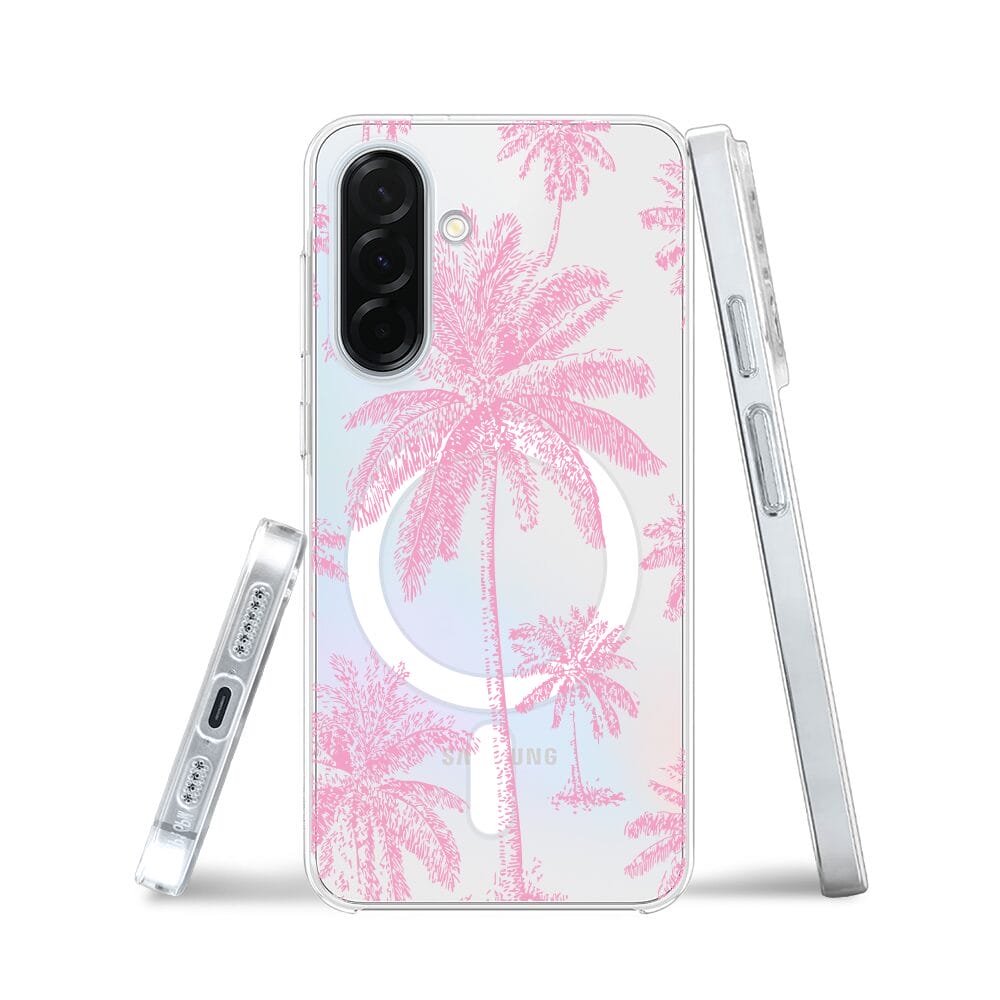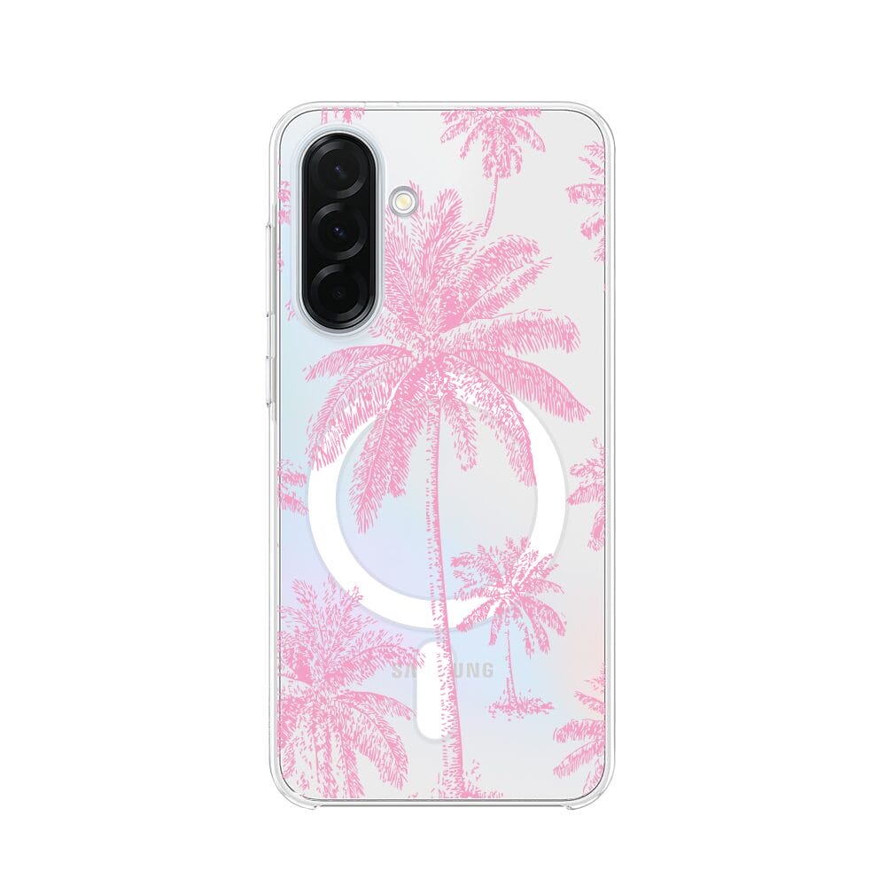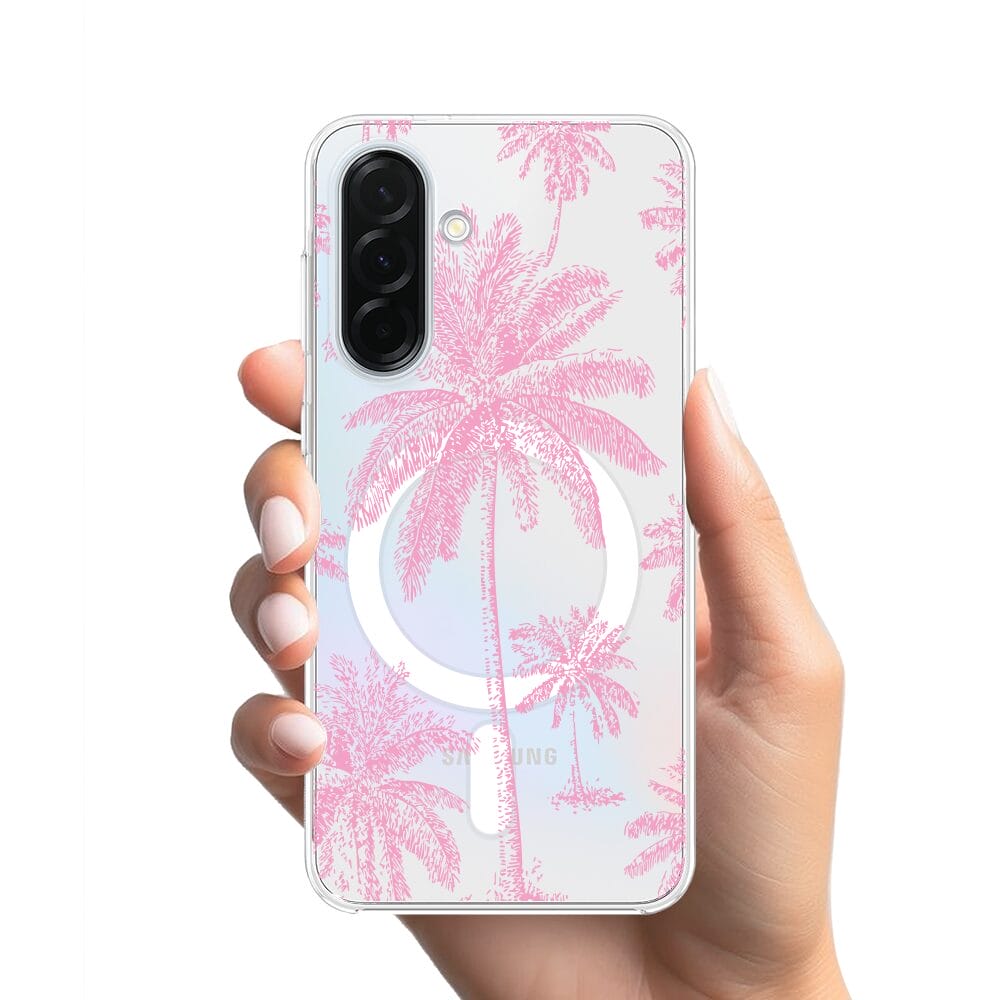 Etui do Samsung Galaxy A36 5G z MagSafe przeźroczyste, silikonowe Flexi, Mystic, Różowe palmy