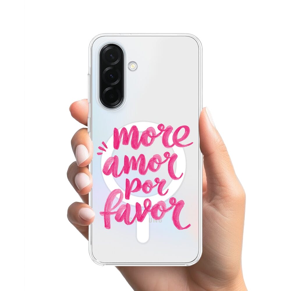 Etui do Samsung Galaxy A36 5G z MagSafe przeźroczyste, silikonowe Flexi, Positive Vibes, More amore per favore
