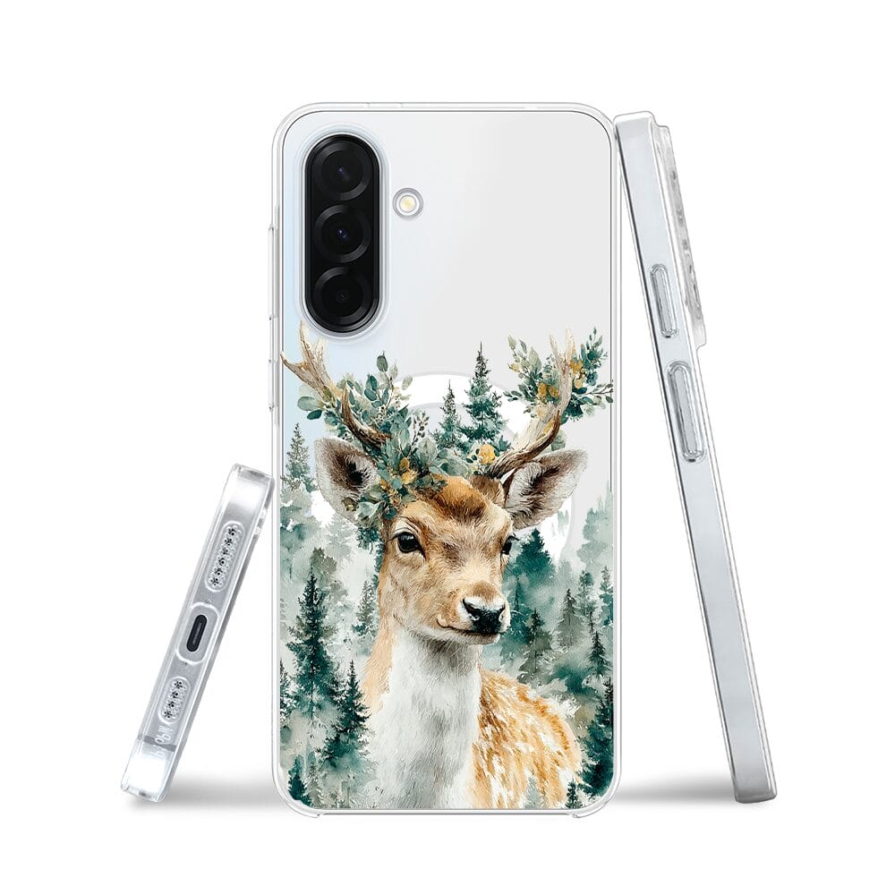 Etui do Samsung Galaxy A36 5G z MagSafe przeźroczyste, silikonowe Flexi, Przytulne święta, Leśny jelonek