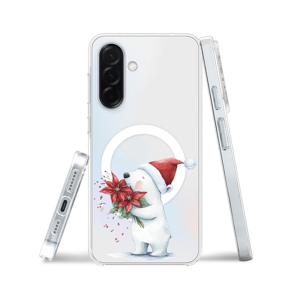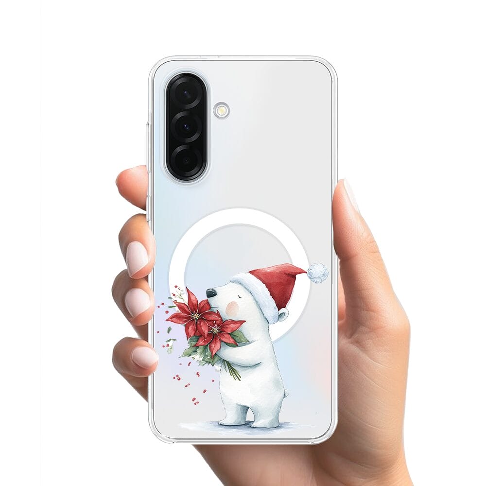 Etui do Samsung Galaxy A36 5G z MagSafe przeźroczyste, silikonowe Flexi, Przytulne święta, Miś świąteczny