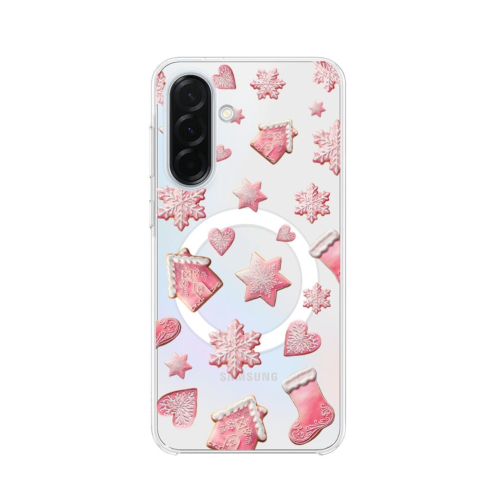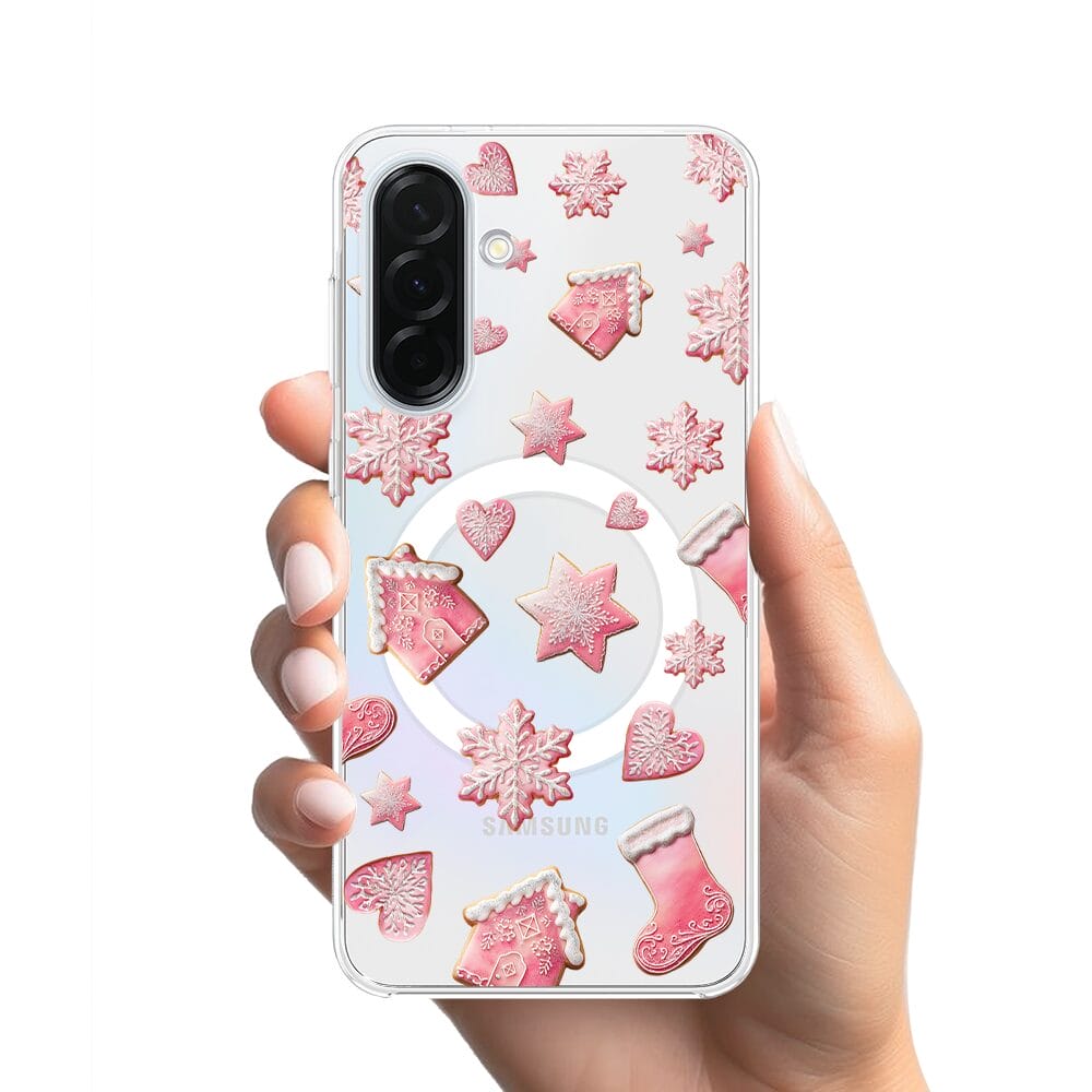 Etui do Samsung Galaxy A36 5G z MagSafe przeźroczyste, silikonowe Flexi, Przytulne święta, Różowe pierniczki