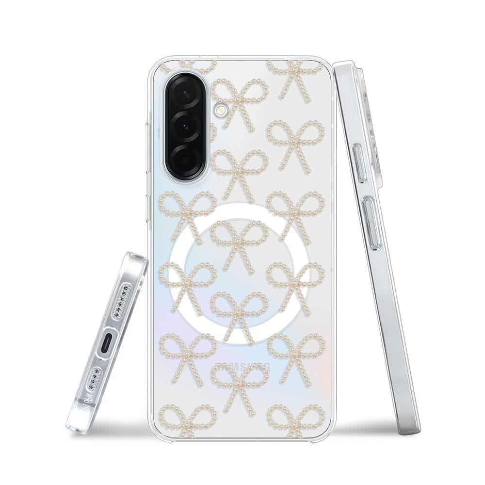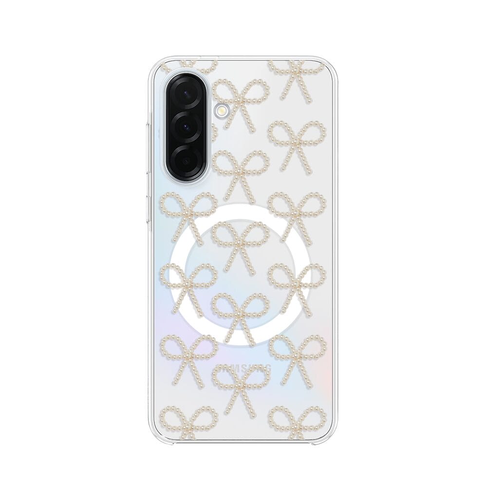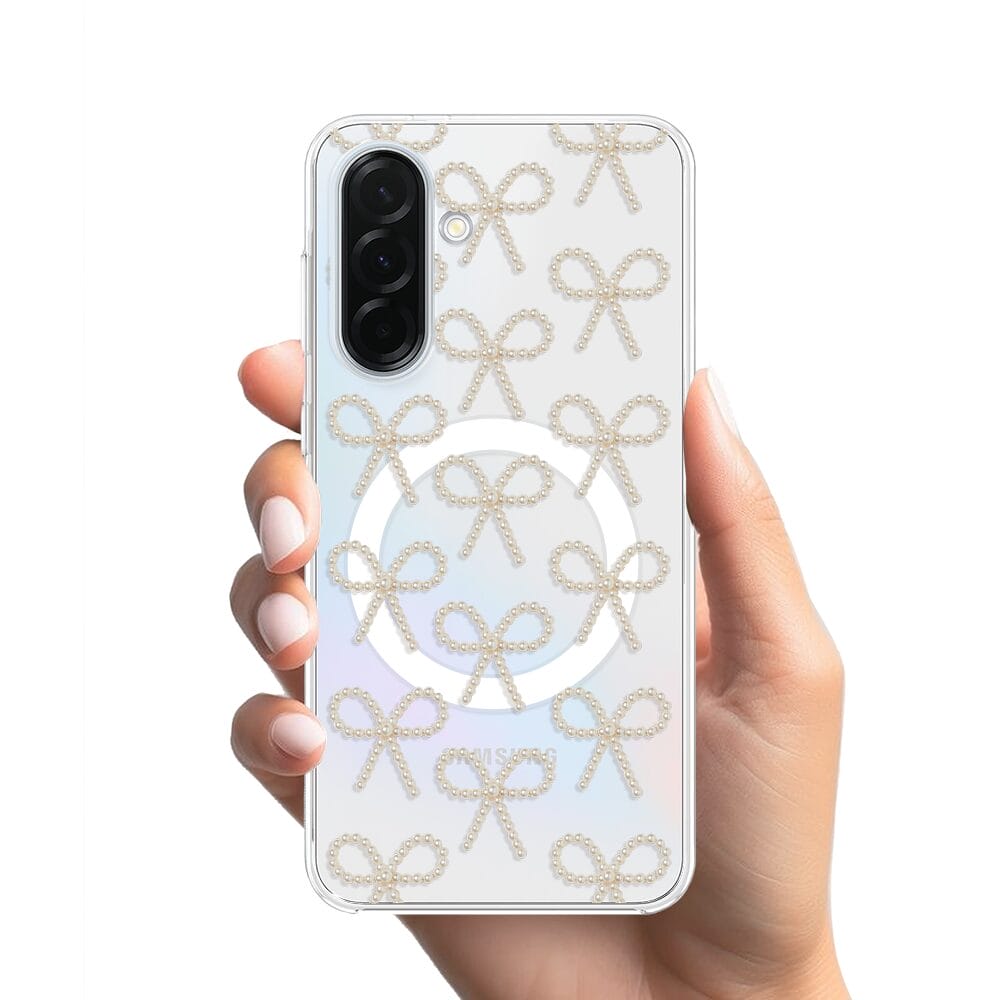 Etui do Samsung Galaxy A36 5G z MagSafe przeźroczyste, silikonowe Flexi, Przytulne święta, złote kokardki