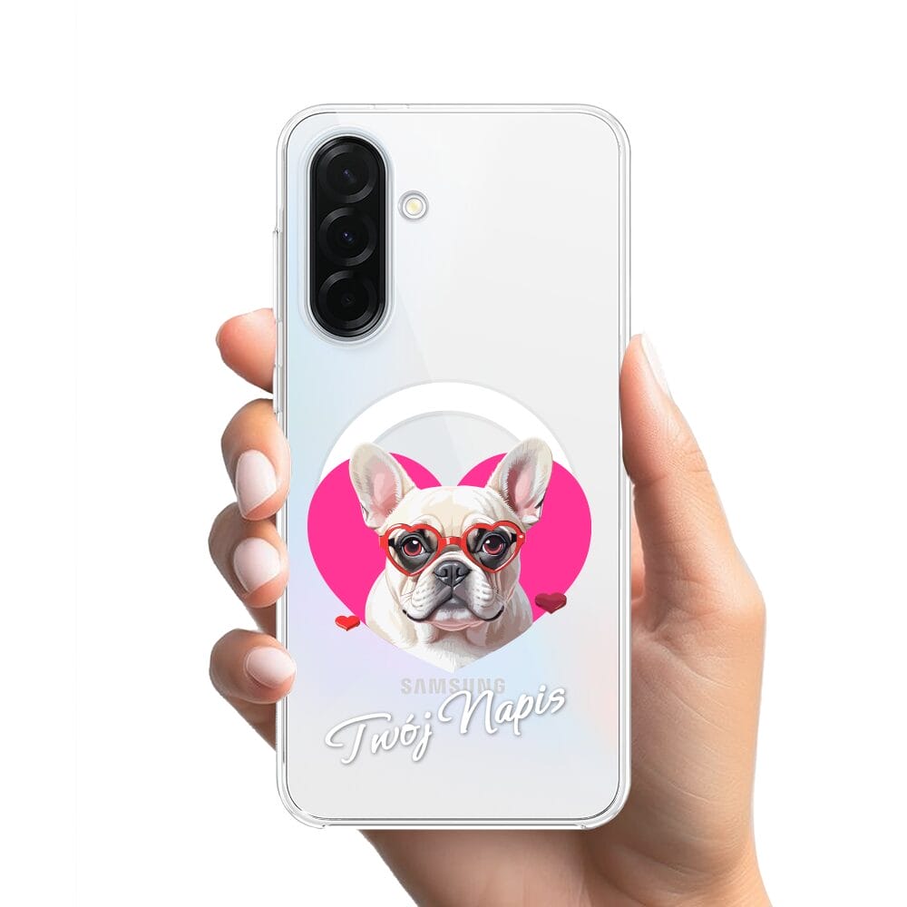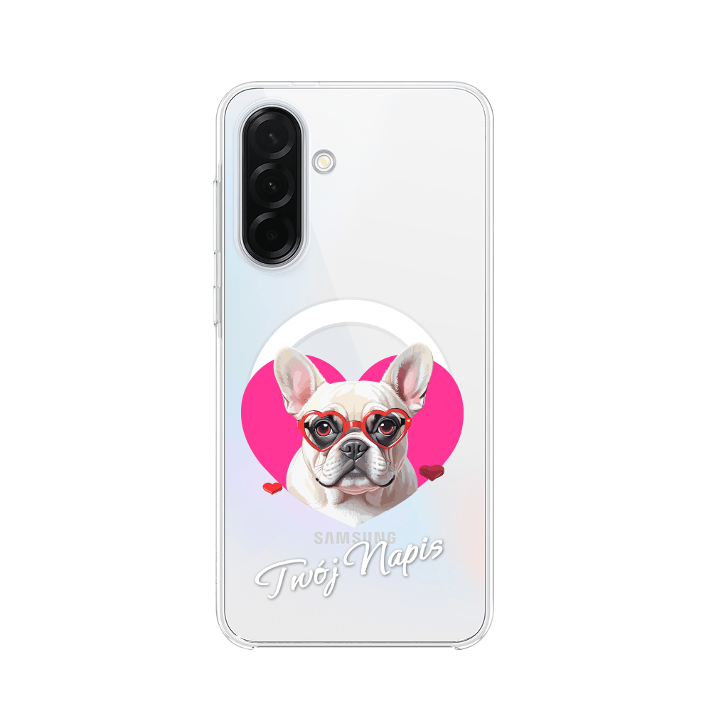 Etui do Samsung Galaxy A36 5G z MagSafe przeźroczyste, silikonowe Flexi, Puppy Love, pies rasy Buldog Francuski
