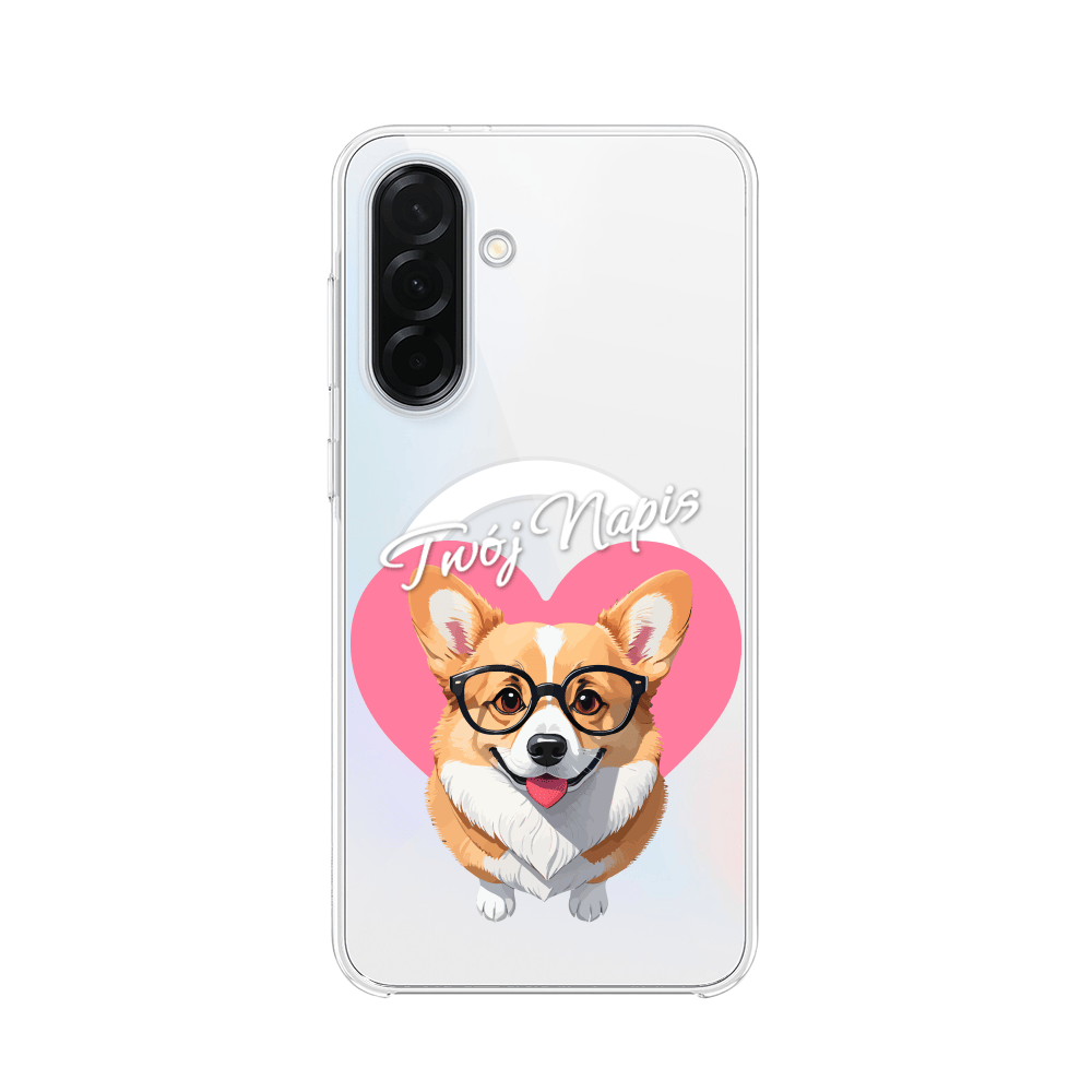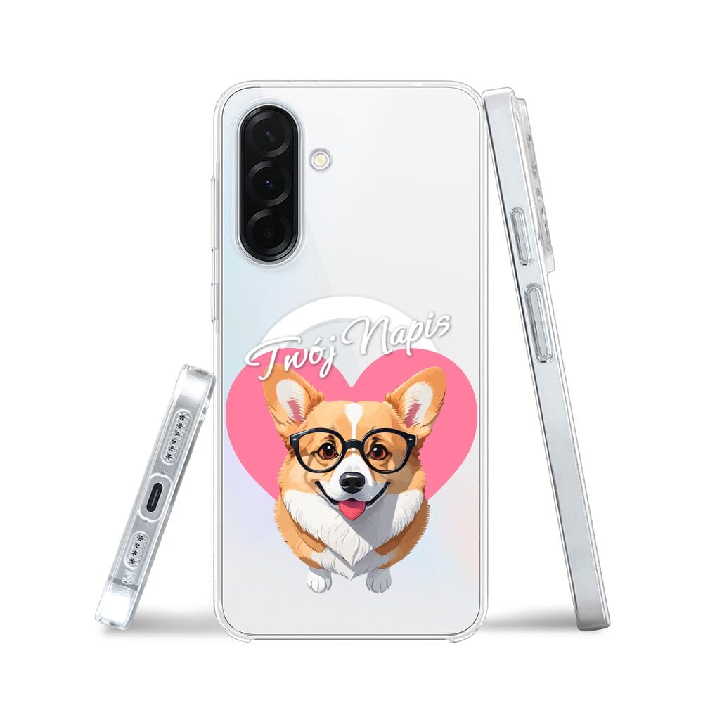 Etui do Samsung Galaxy A36 5G z MagSafe przeźroczyste, silikonowe Flexi, Puppy Love, pies rasy Corgi