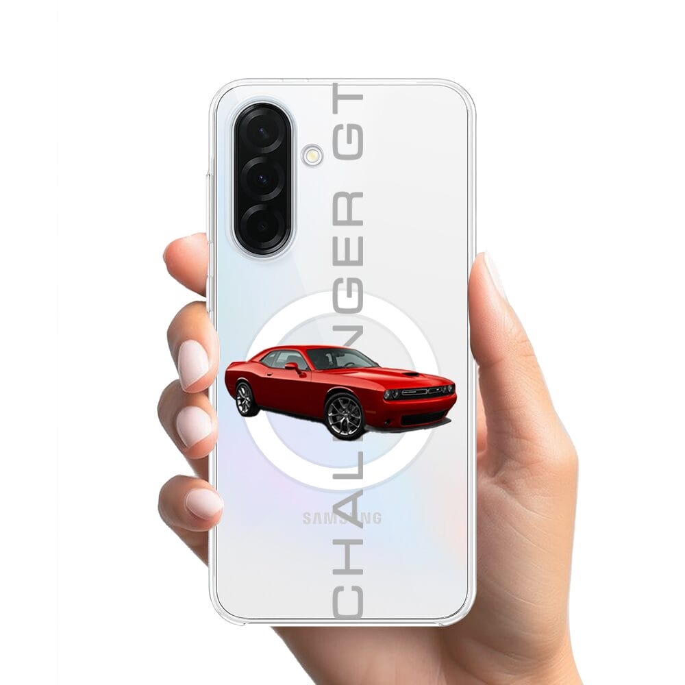 Etui do Samsung Galaxy A36 5G z MagSafe przeźroczyste, silikonowe Flexi, Szybkie Auta, czerwony Challenger GT