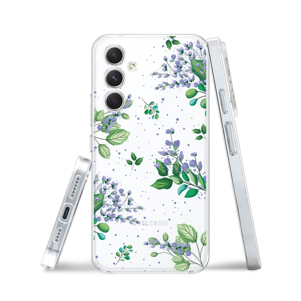 Etui do Samsung Galaxy A54 5G przeźroczyste, silikonowe Flexi, fioletowe kwiatki