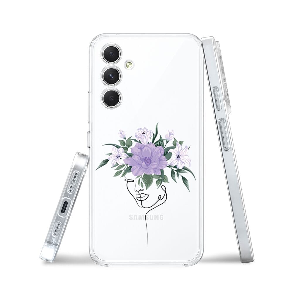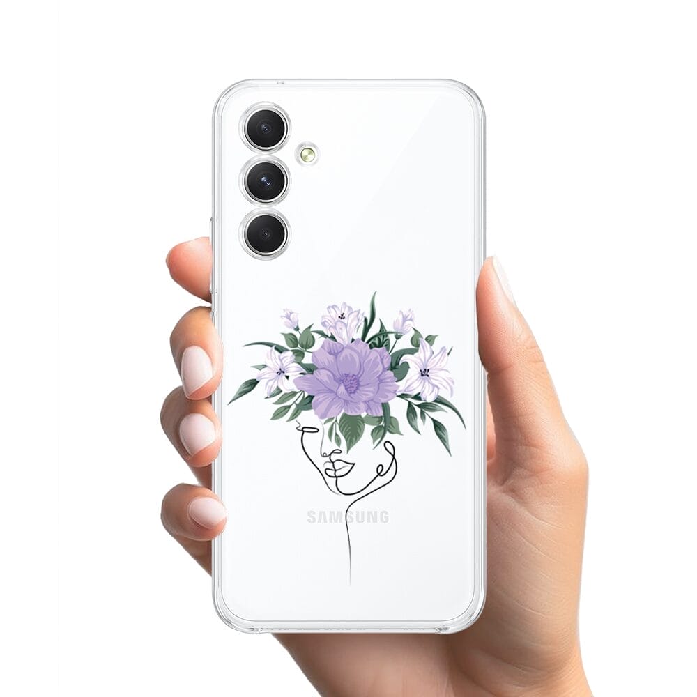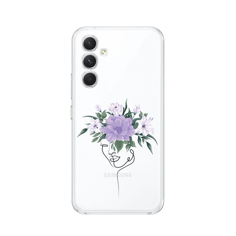 Etui do Samsung Galaxy A54 5G przeźroczyste, silikonowe Flexi, kobieta z kwiatami