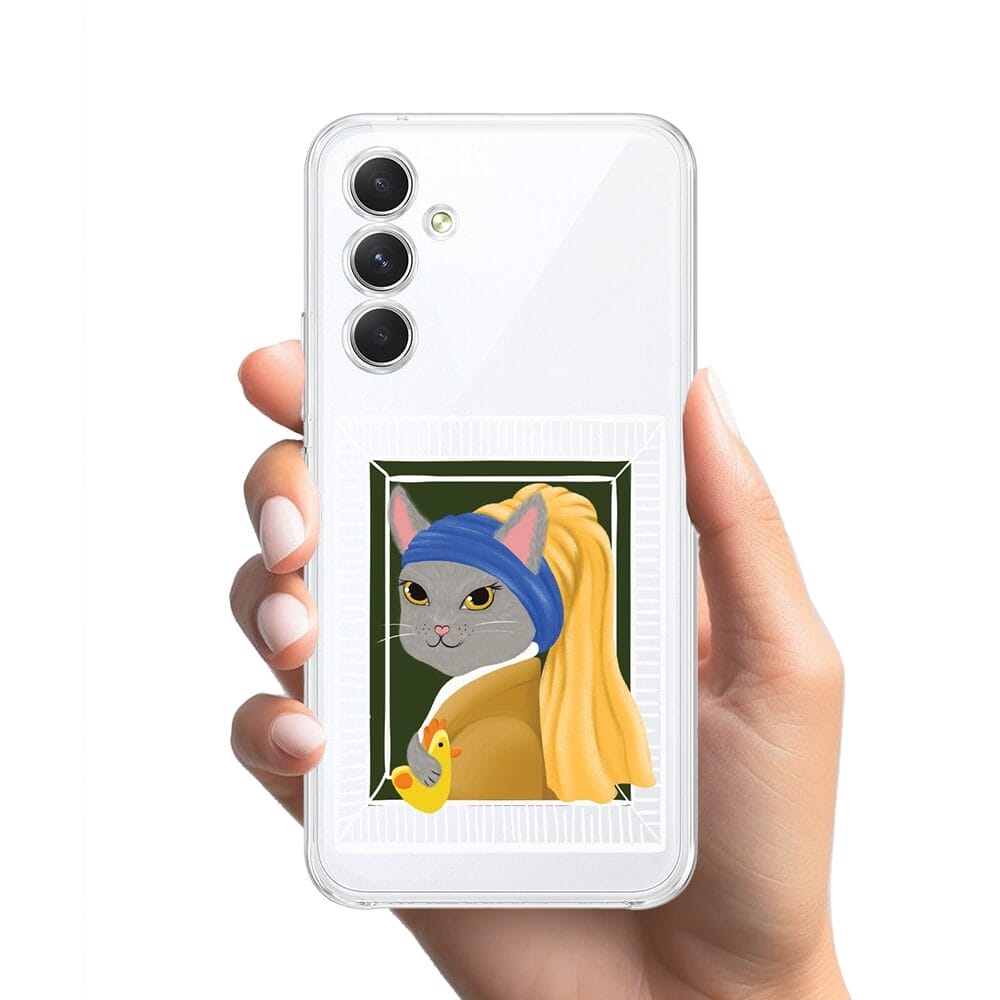 Etui do Samsung Galaxy A54 5G przeźroczyste, silikonowe Flexi, kotek z kurczakiem
