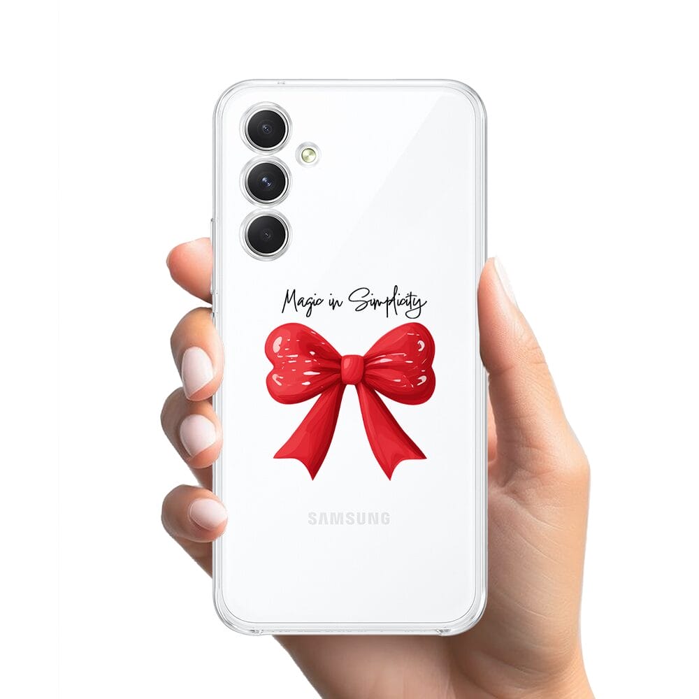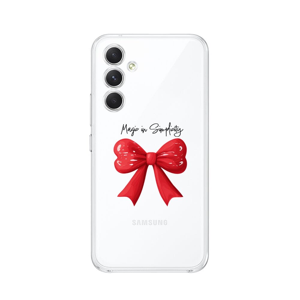 Etui do Samsung Galaxy A54 5G przeźroczyste, silikonowe Flexi, Przytulne święta, Czerwona kokarda