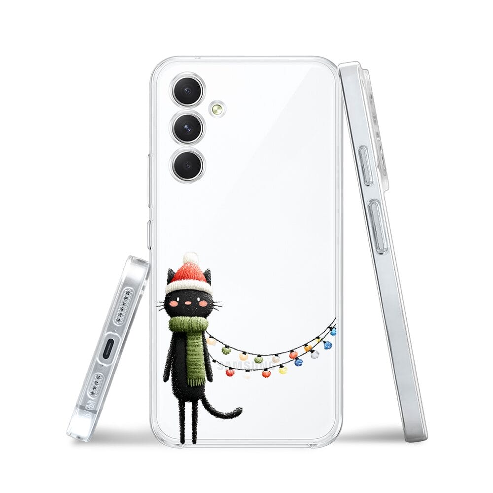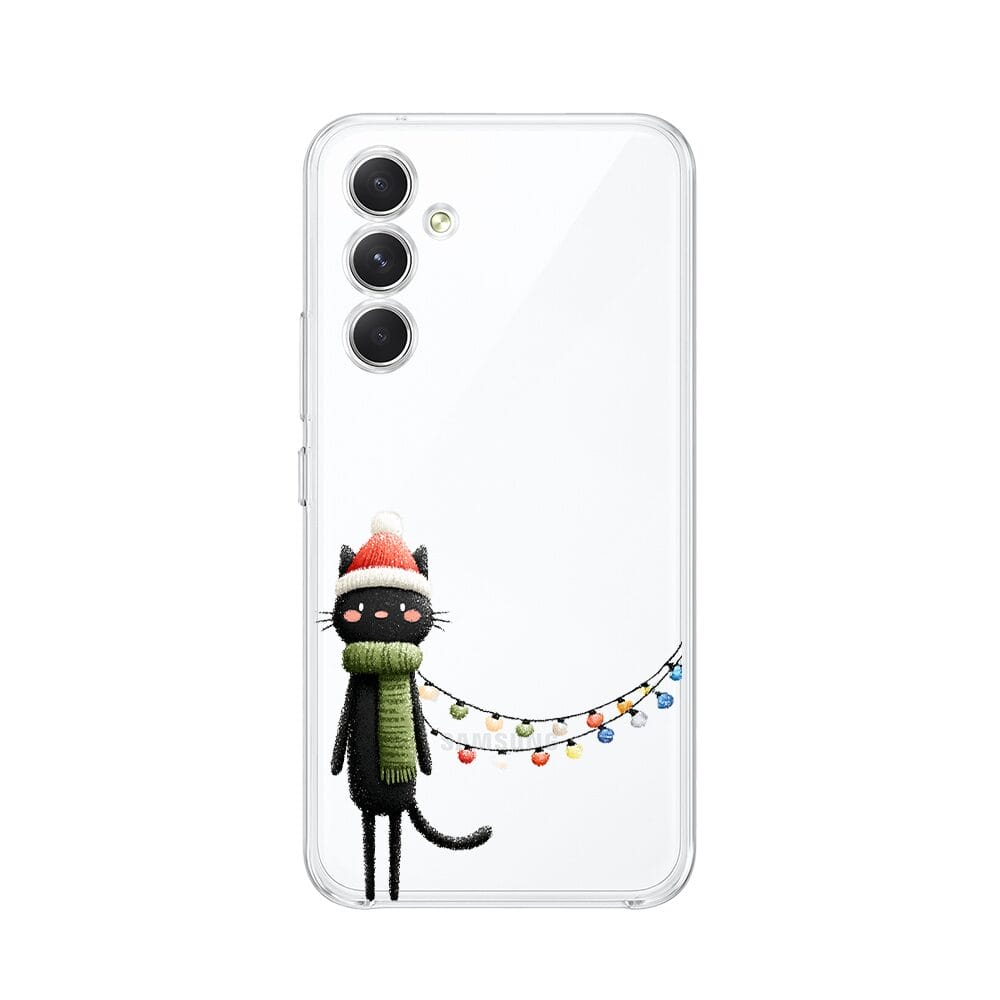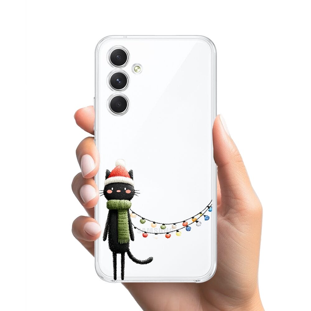 Etui do Samsung Galaxy A54 5G przeźroczyste, silikonowe Flexi, Przytulne święta, Kot przebrany za elfa
