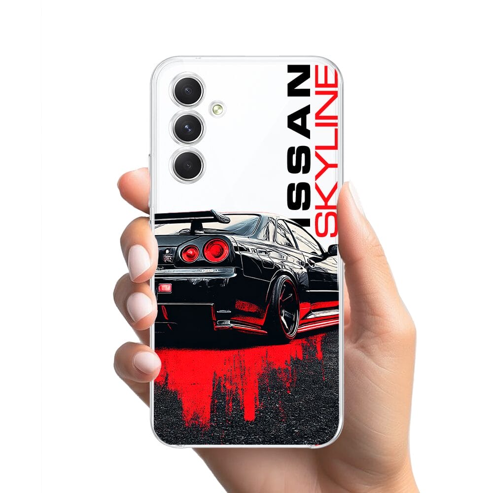 Etui do Samsung Galaxy A54 5G przeźroczyste, silikonowe Flexi, Szybkie Auta, czarny Skyline