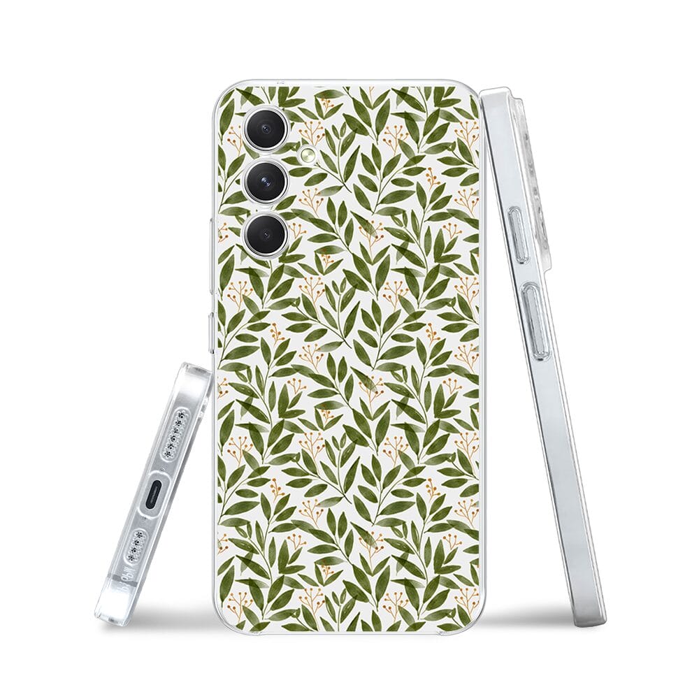 Etui do Samsung Galaxy A54 5G przeźroczyste, silikonowe Flexi, zielone gałązki
