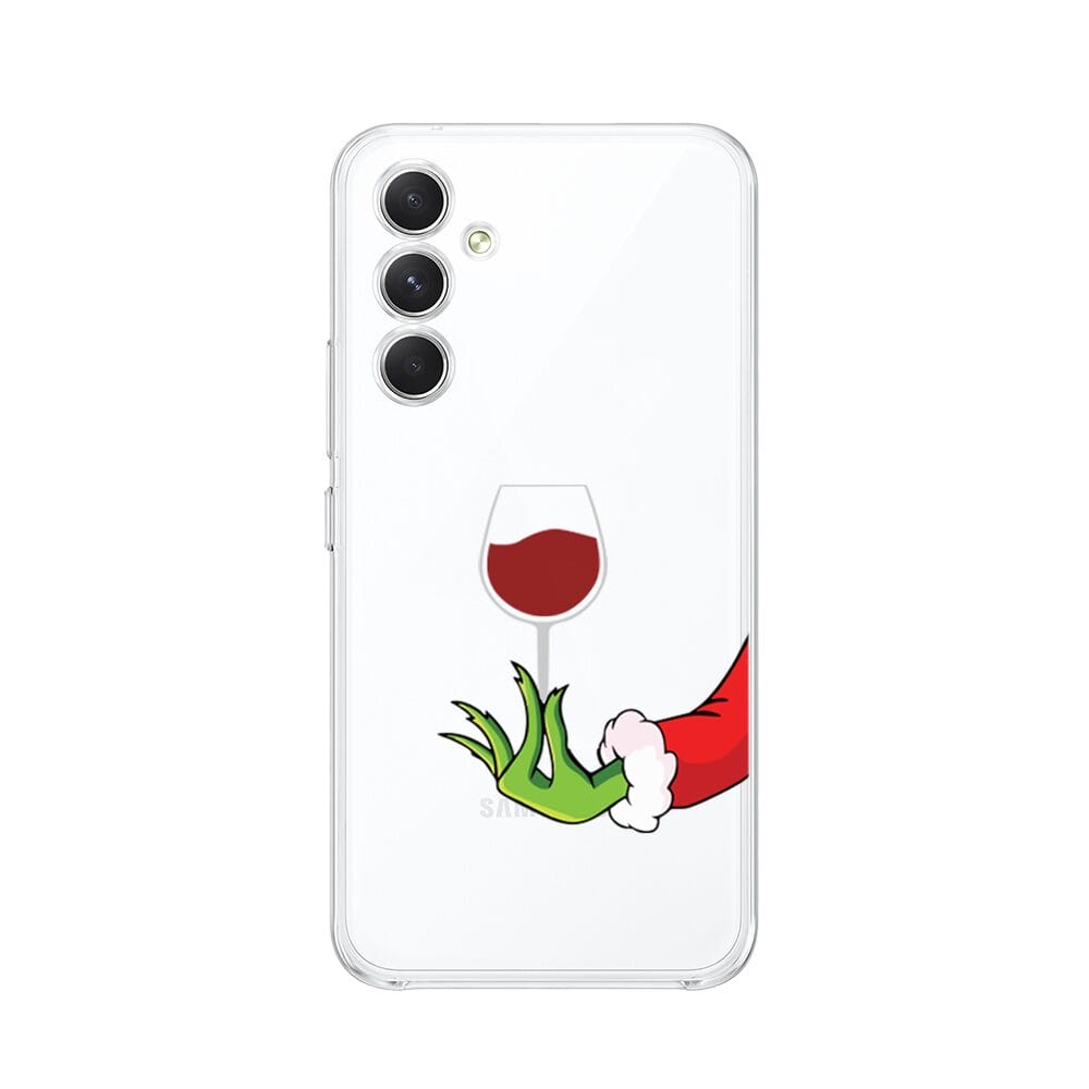 Etui do Samsung Galaxy A54 5G przeźroczyste, silikonowe Flexi, Zielony psotnik z lampką wina