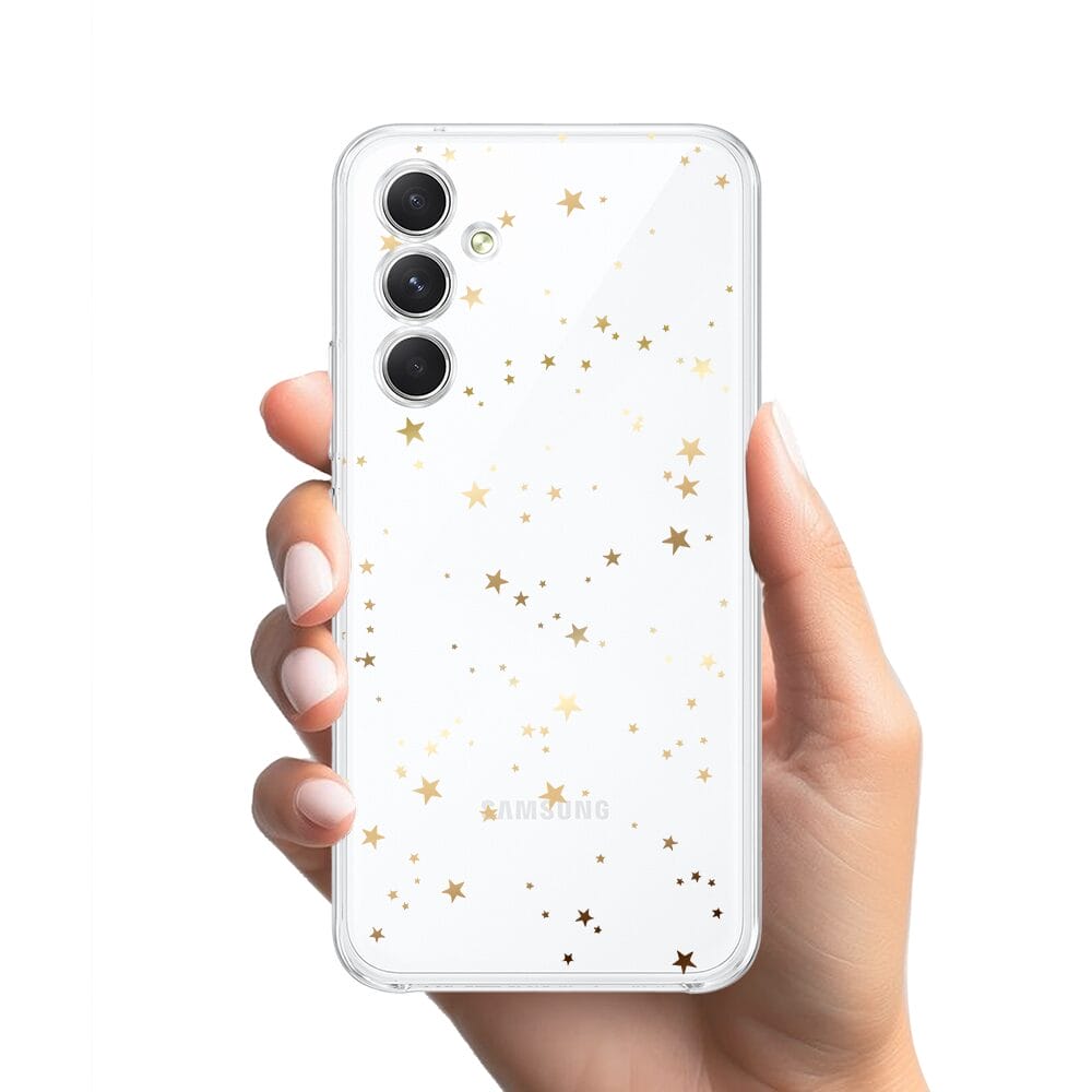 Etui do Samsung Galaxy A54 5G przeźroczyste, silikonowe Flexi, Zimowa magia, Złote gwiazdki