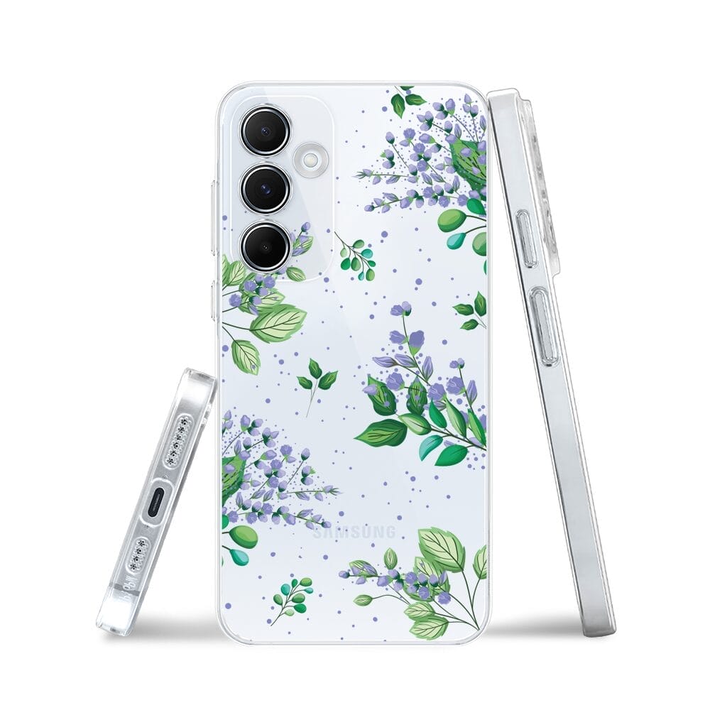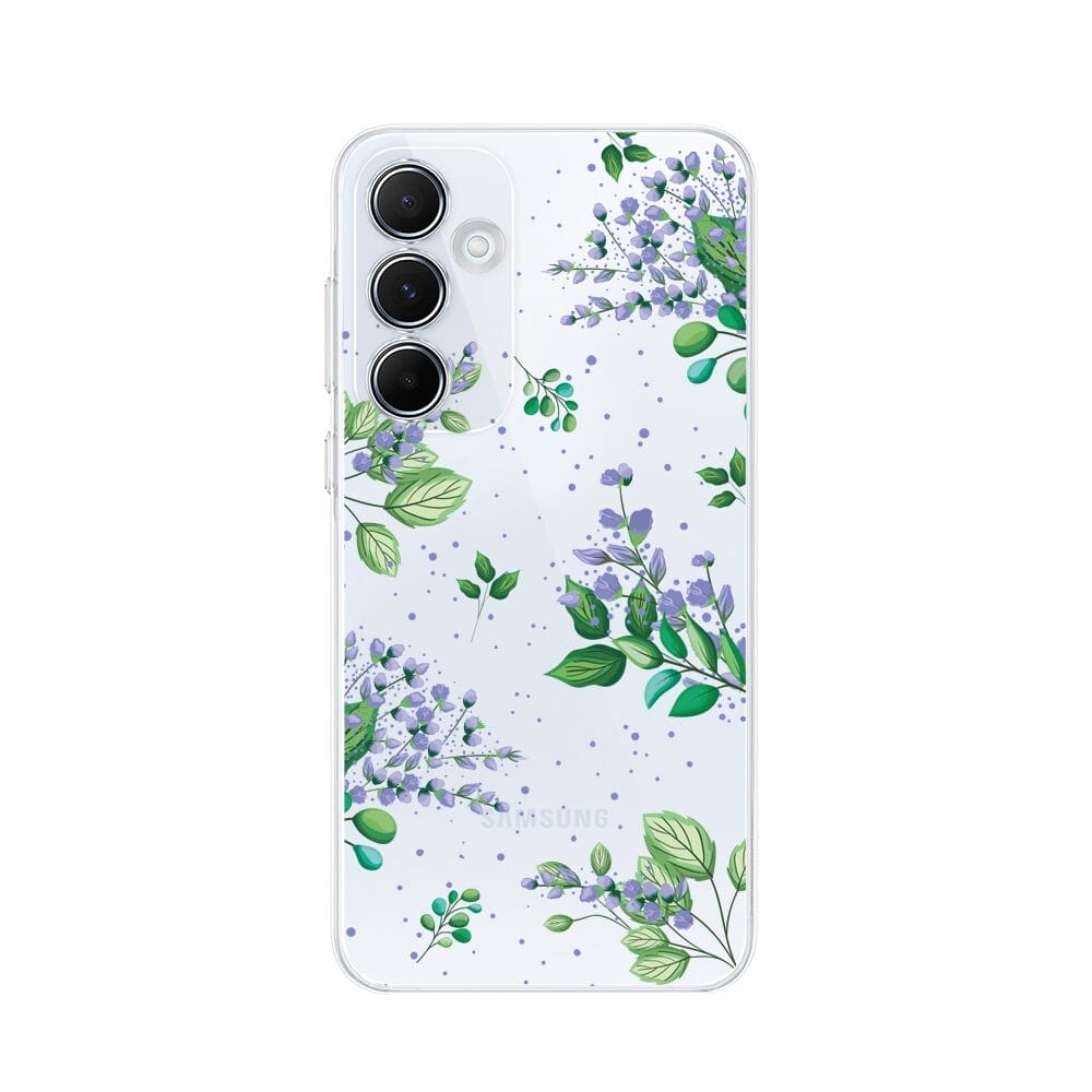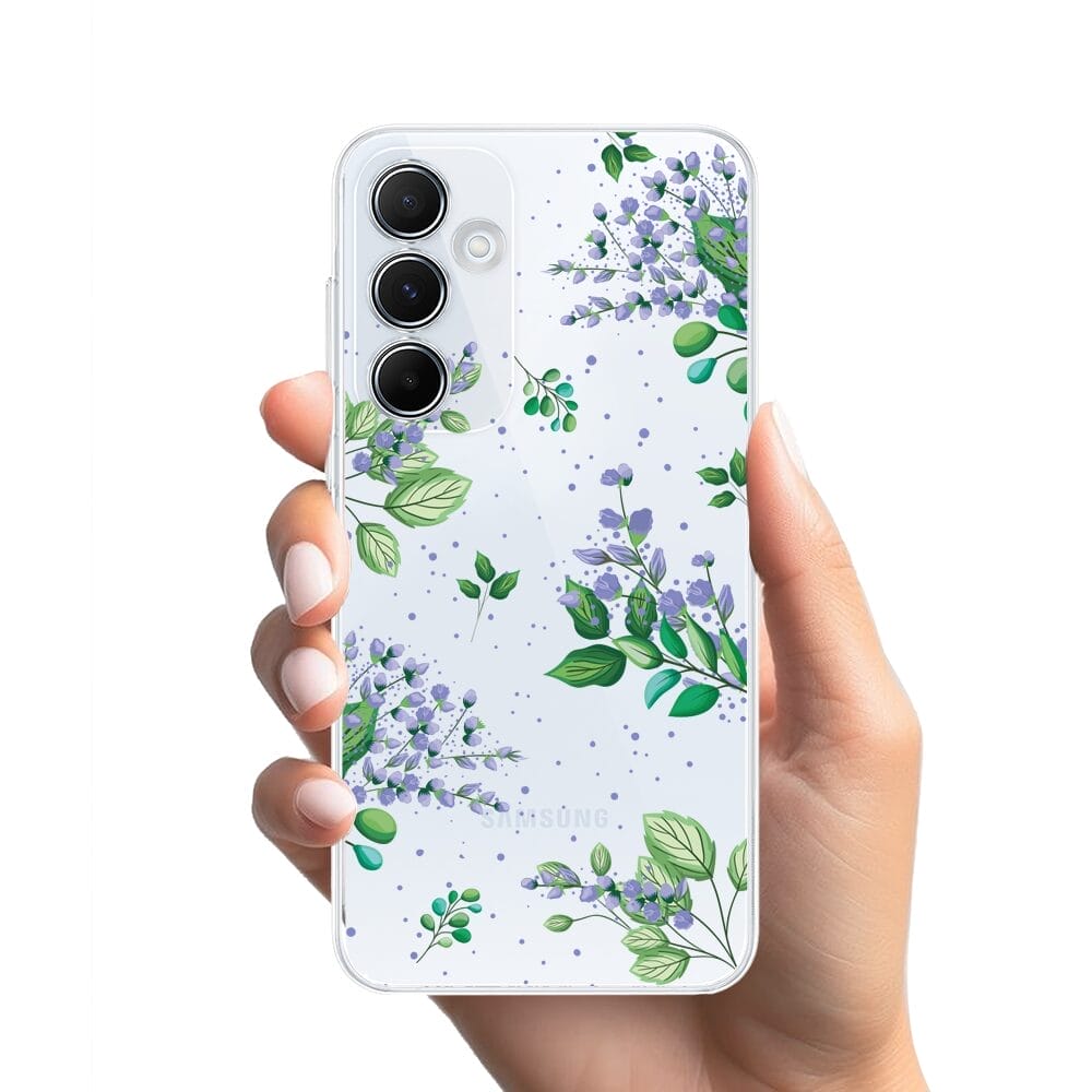 Etui do Samsung Galaxy A55 5G przeźroczyste, silikonowe Flexi, fioletowe kwiatki