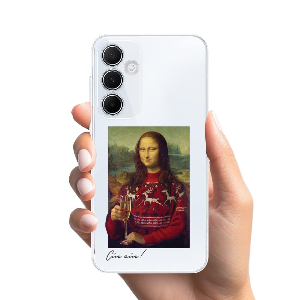 Etui do Samsung Galaxy A55 5G przeźroczyste, silikonowe Flexi, Mona Lisa z szampanem