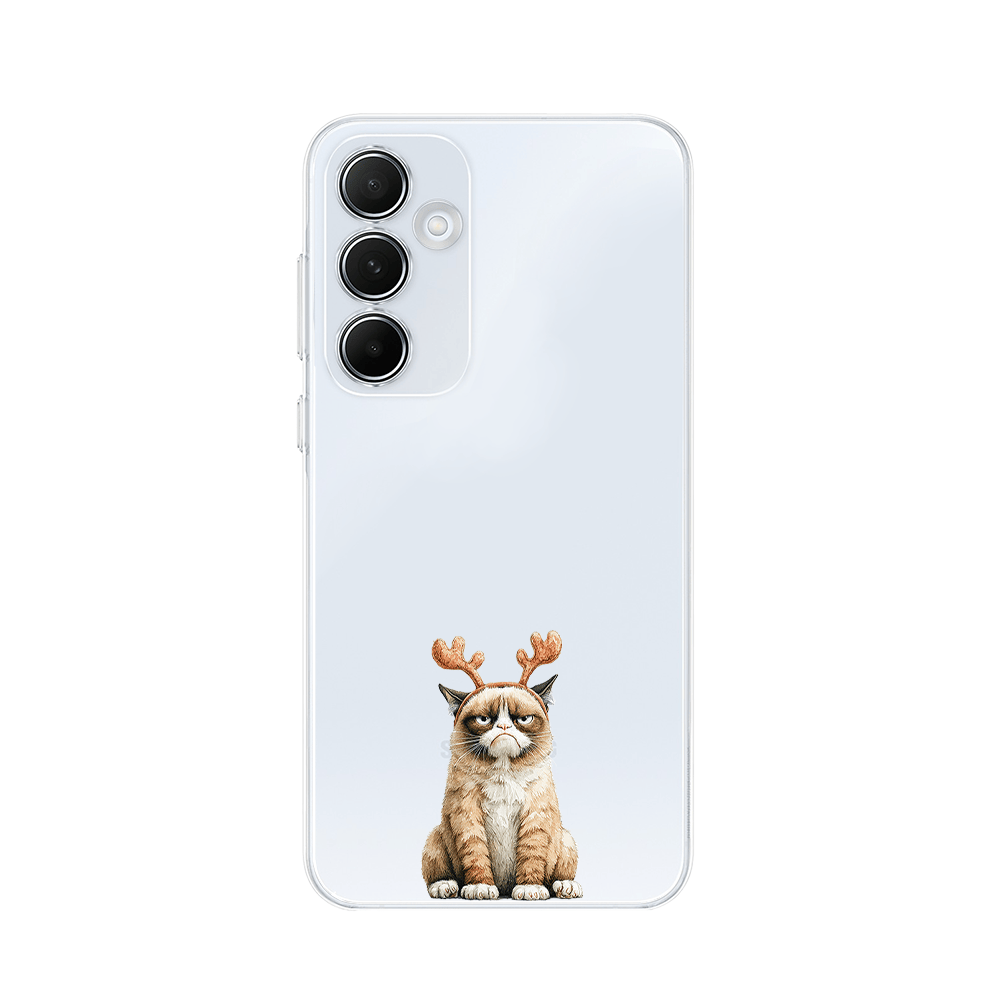 Etui do Samsung Galaxy A55 5G przeźroczyste, silikonowe Flexi, Przytulne święta, Kot który nie chciał być reniferem