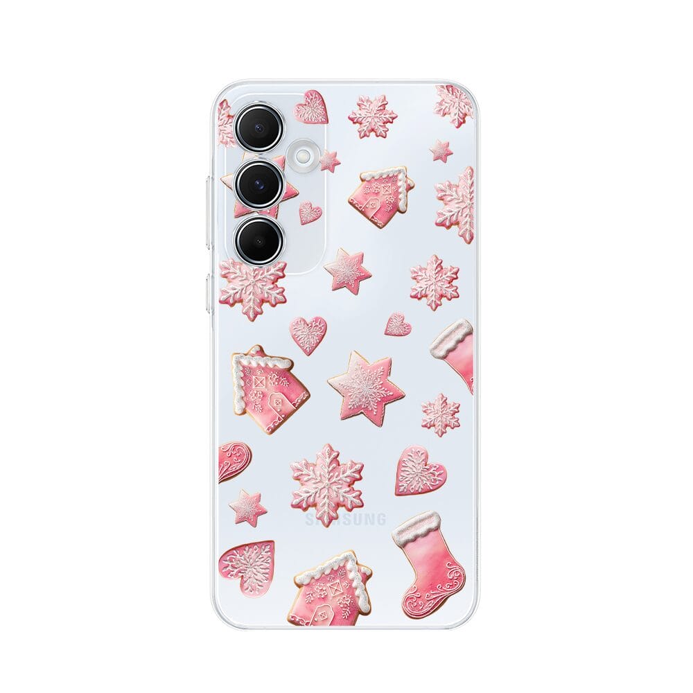 Etui do Samsung Galaxy A55 5G przeźroczyste, silikonowe Flexi, Przytulne święta, Różowe pierniczki