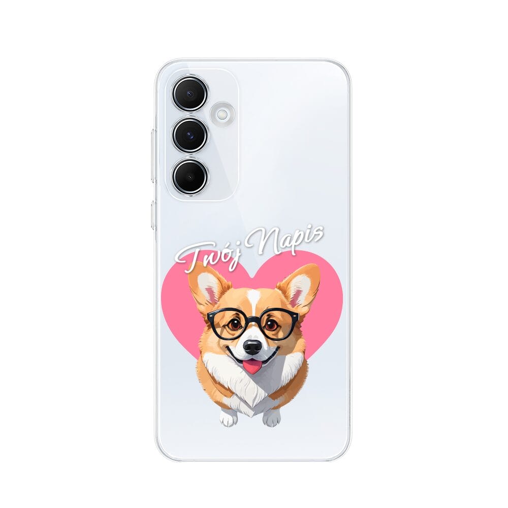 Etui do Samsung Galaxy A55 5G przeźroczyste, silikonowe Flexi, Puppy Love, pies rasy Corgi
