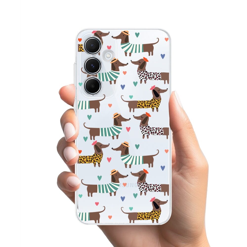 Etui do Samsung Galaxy A55 5G przeźroczyste, silikonowe Flexi, zakochane jamniki