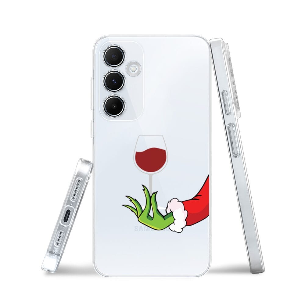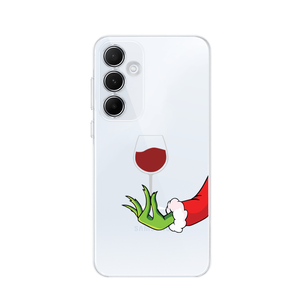 Etui do Samsung Galaxy A55 5G przeźroczyste, silikonowe Flexi, Zielony psotnik z lampką wina
