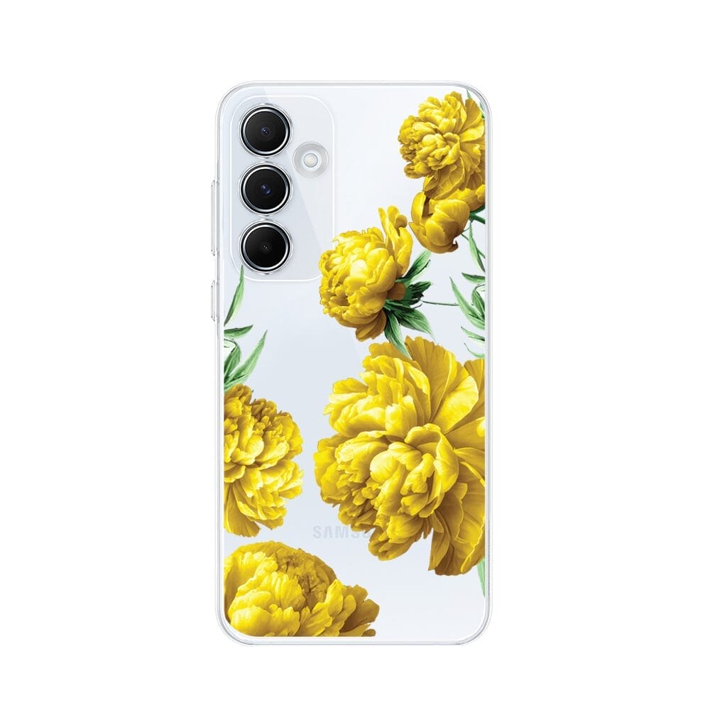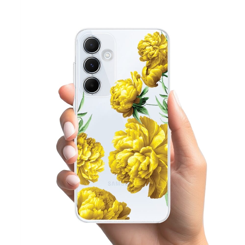 Etui do Samsung Galaxy A55 5G przeźroczyste, silikonowe Flexi, żółte piwonie
