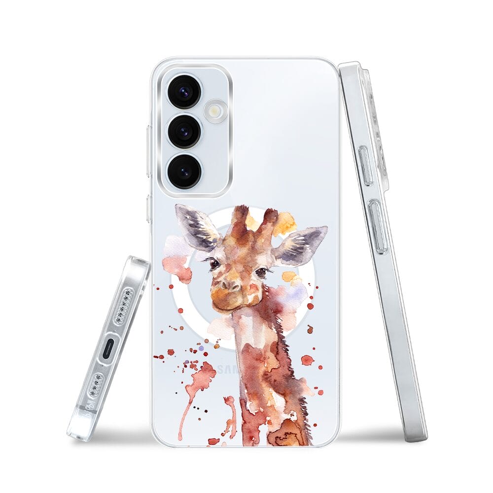 Etui do Samsung Galaxy A55 5G z MagSafe przeźroczyste, silikonowe Flexi, Akwarelowe Zoo, Żyrafa