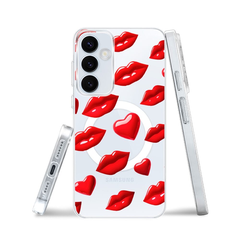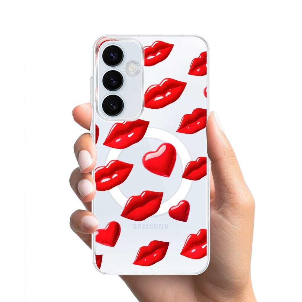 Etui do Samsung Galaxy A55 5G z MagSafe przeźroczyste, silikonowe Flexi, czerwone usta
