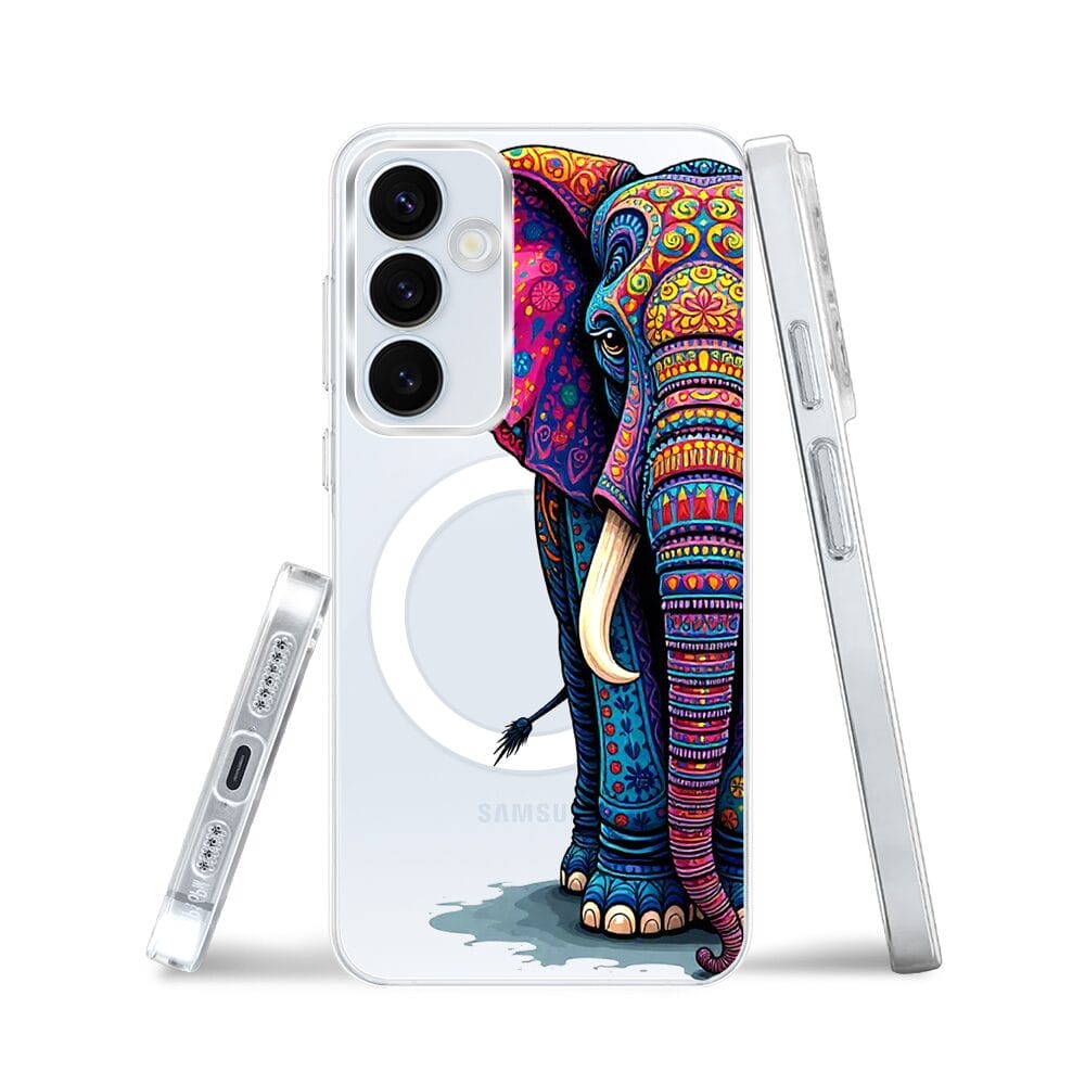 Etui do Samsung Galaxy A55 5G z MagSafe przeźroczyste, silikonowe Flexi, Dzika Mandala, Słoń