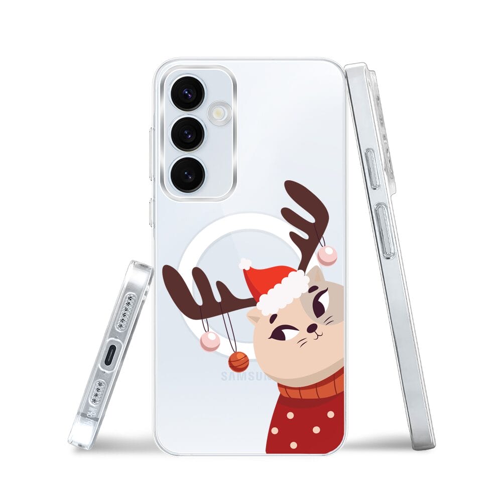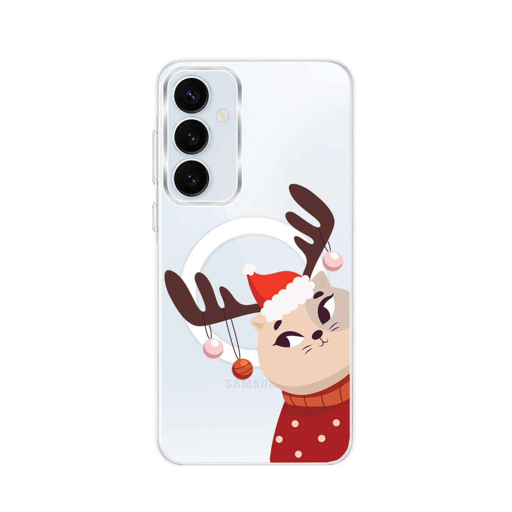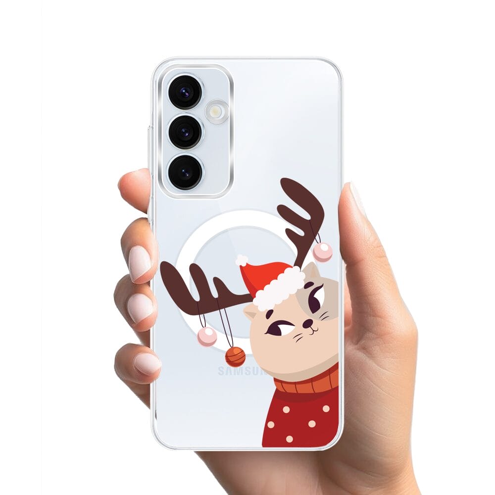 Etui do Samsung Galaxy A55 5G z MagSafe przeźroczyste, silikonowe Flexi, Kotek przebrany za reniferka