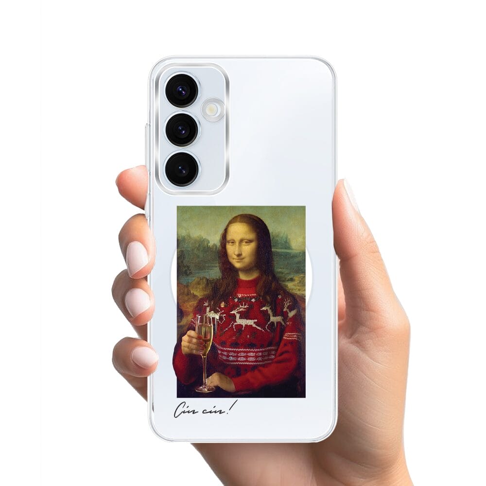 Etui do Samsung Galaxy A55 5G z MagSafe przeźroczyste, silikonowe Flexi, Mona Lisa z szampanem
