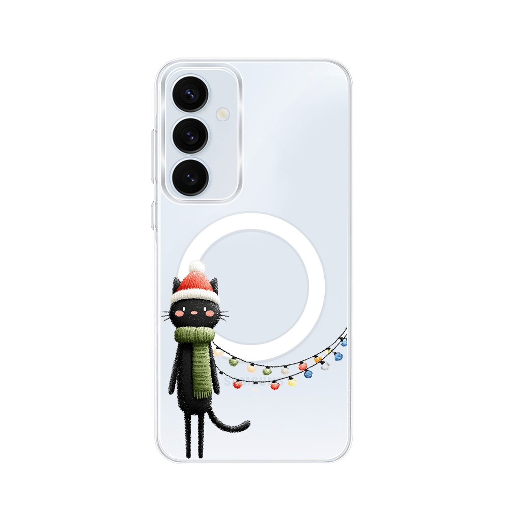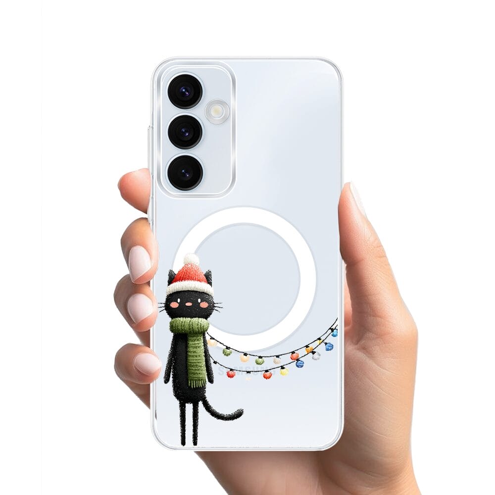 Etui do Samsung Galaxy A55 5G z MagSafe przeźroczyste, silikonowe Flexi, Przytulne święta, Kot przebrany za elfa