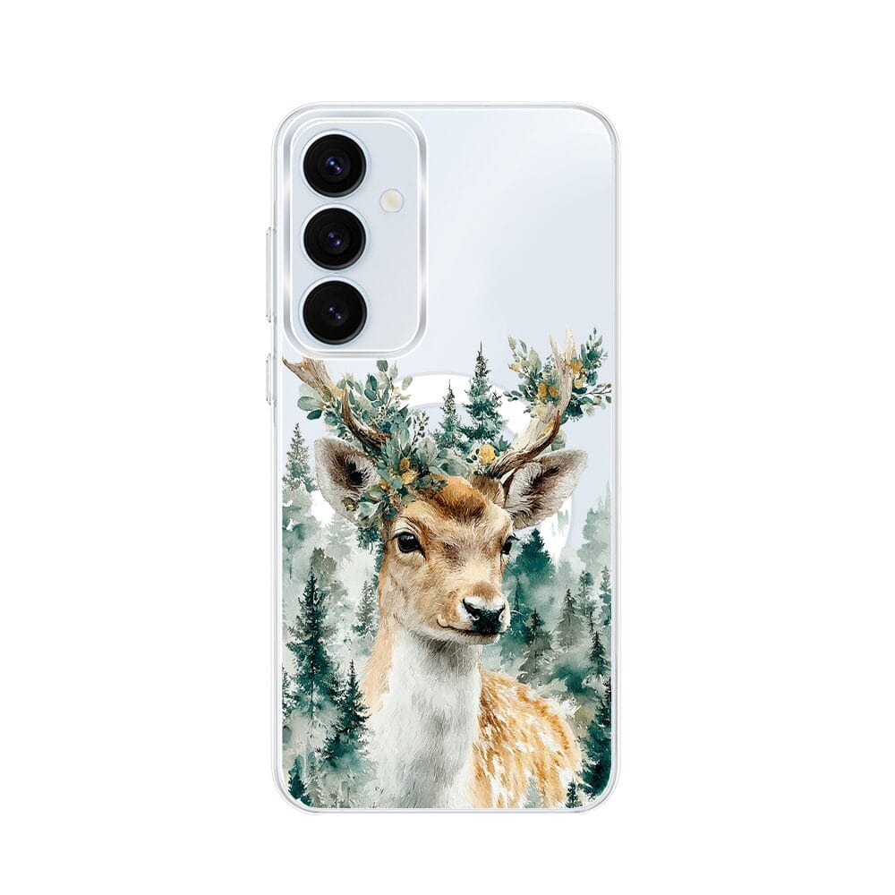 Etui do Samsung Galaxy A55 5G z MagSafe przeźroczyste, silikonowe Flexi, Przytulne święta, Leśny jelonek
