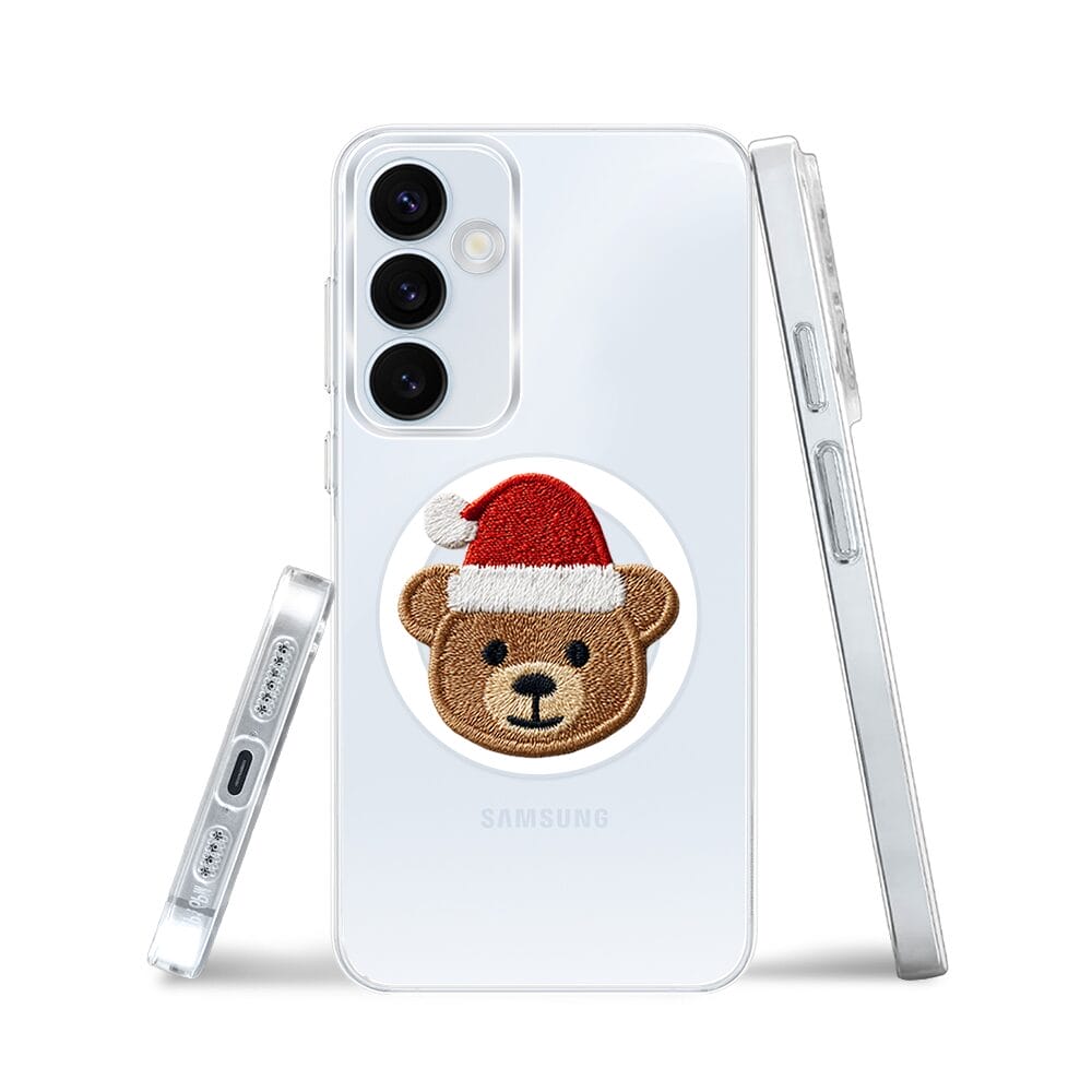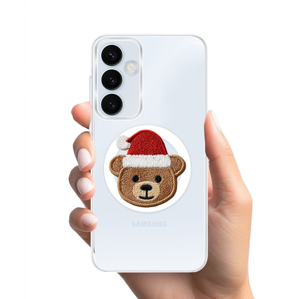 Etui do Samsung Galaxy A55 5G z MagSafe przeźroczyste, silikonowe Flexi, Przytulne święta, Miś mikołajek