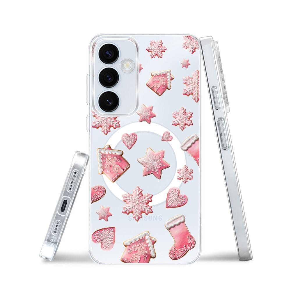Etui do Samsung Galaxy A55 5G z MagSafe przeźroczyste, silikonowe Flexi, Przytulne święta, Różowe pierniczki