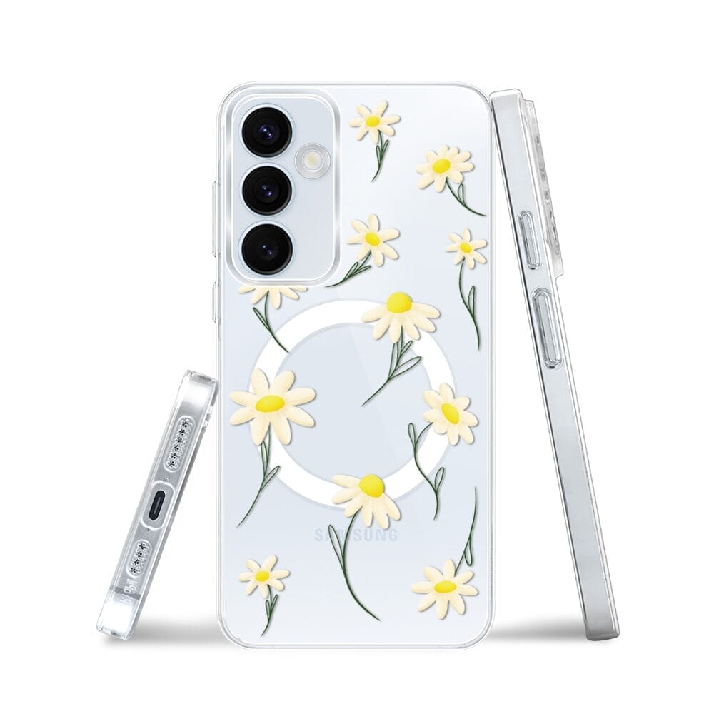 Etui do Samsung Galaxy A55 5G z MagSafe przeźroczyste, silikonowe Flexi, stokrotki