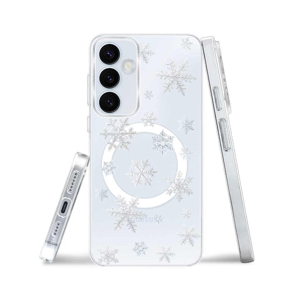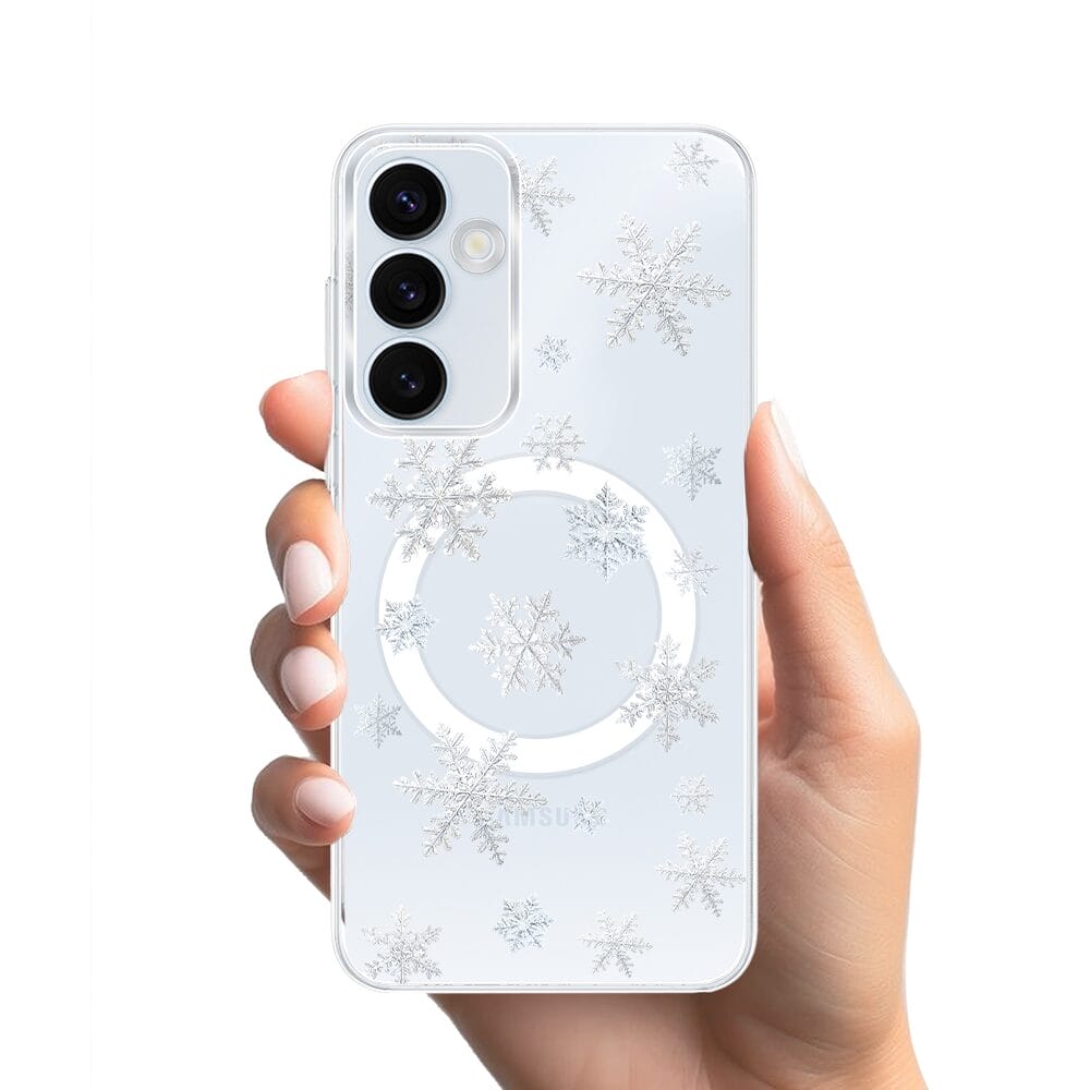 Etui do Samsung Galaxy A55 5G z MagSafe przeźroczyste, silikonowe Flexi, Zimowa magia, Delikatne płatki śniegu