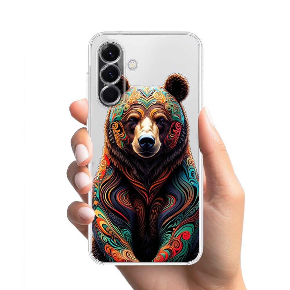Etui do Samsung Galaxy A56 5G przeźroczyste, silikonowe Flexi, Dzika Mandala, Niedźwiedź