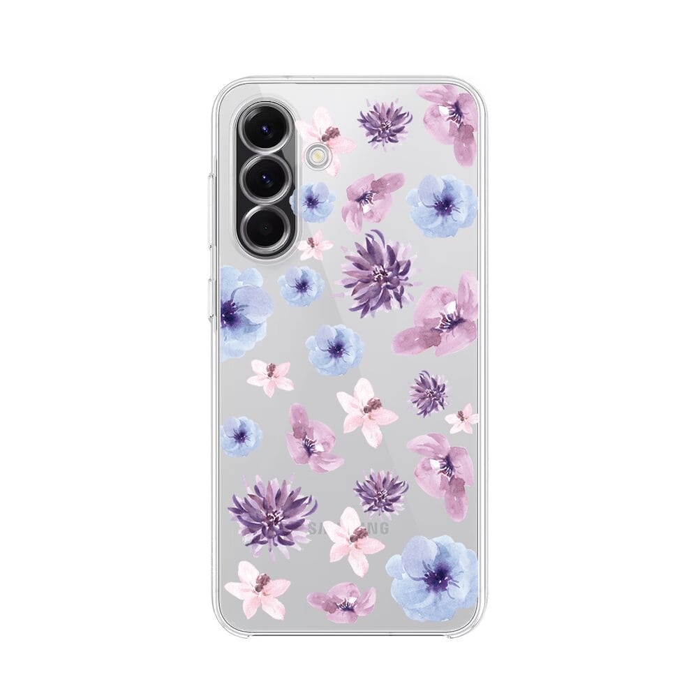 Etui do Samsung Galaxy A56 5G przeźroczyste, silikonowe Flexi, kwiatki niebieskie, fioletowe