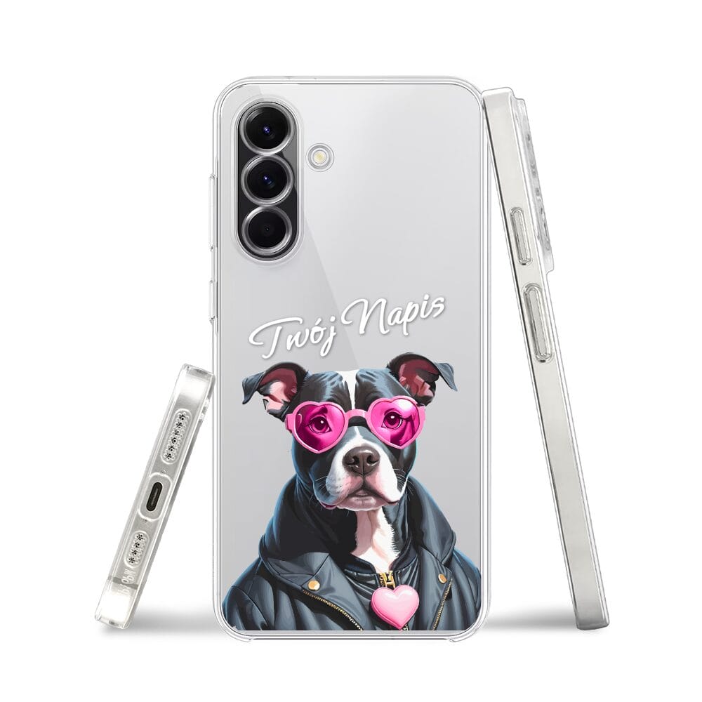 Etui do Samsung Galaxy A56 5G przeźroczyste, silikonowe Flexi, Puppy Love, pies rasy Amstaff