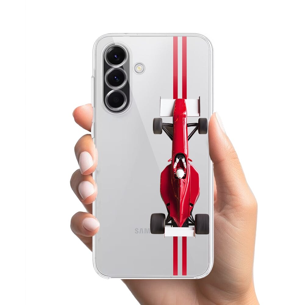 Etui do Samsung Galaxy A56 5G przeźroczyste, silikonowe Flexi, Szybkie Auta, czerwone F1