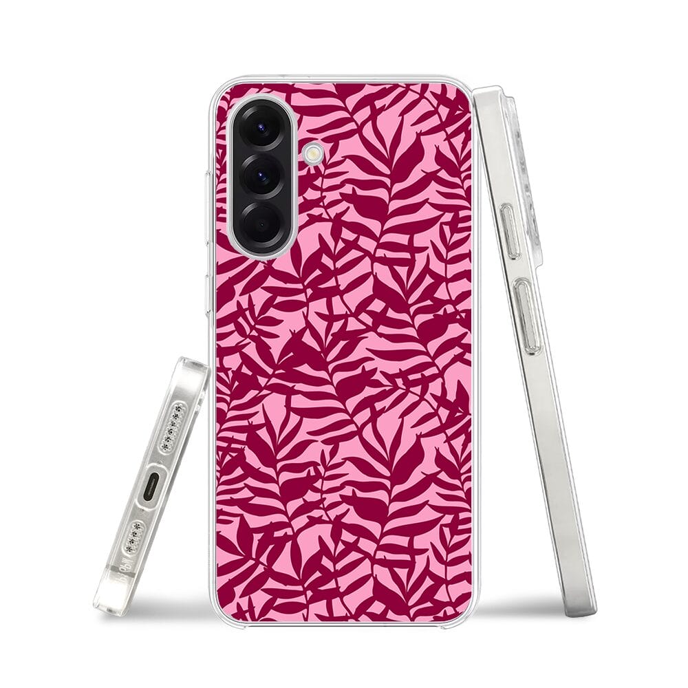 Etui do Samsung Galaxy A56 5G z MagSafe przeźroczyste, silikonowe Flexi, bordowe liście
