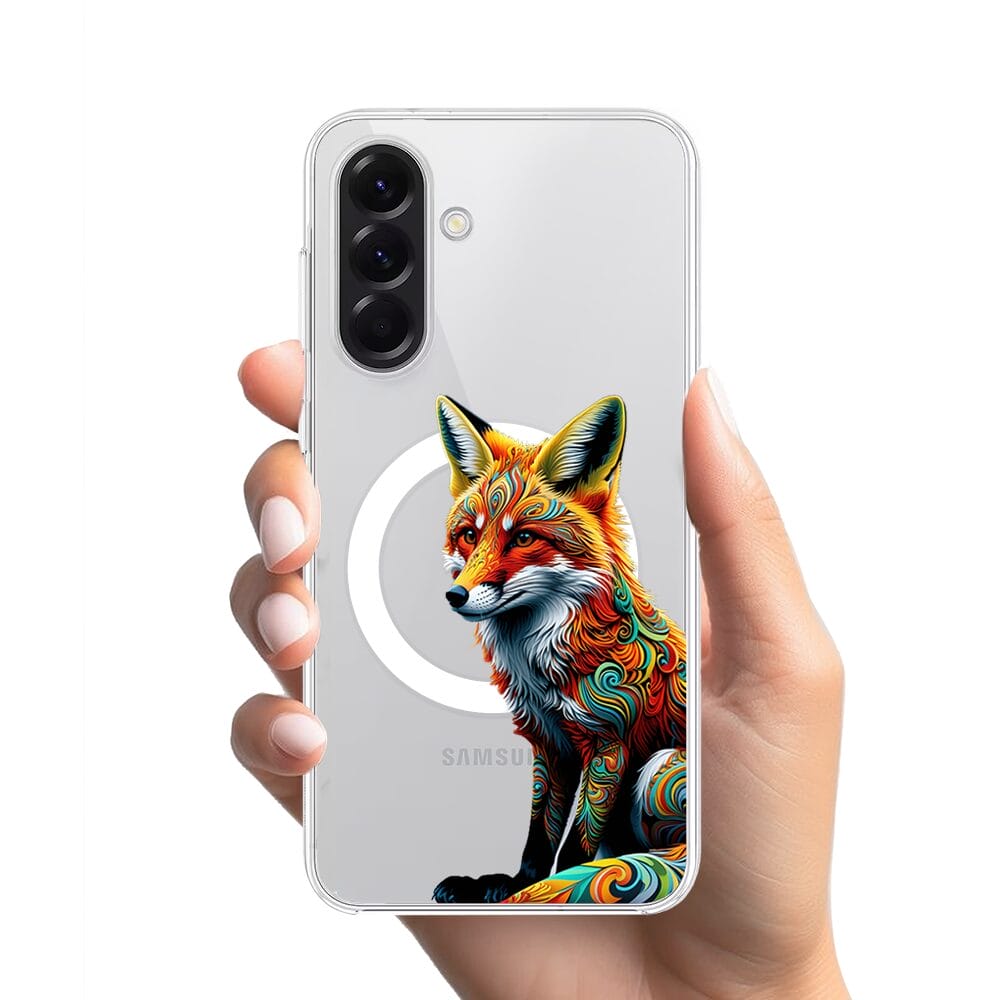 Etui do Samsung Galaxy A56 5G z MagSafe przeźroczyste, silikonowe Flexi, Dzika Mandala, Lis